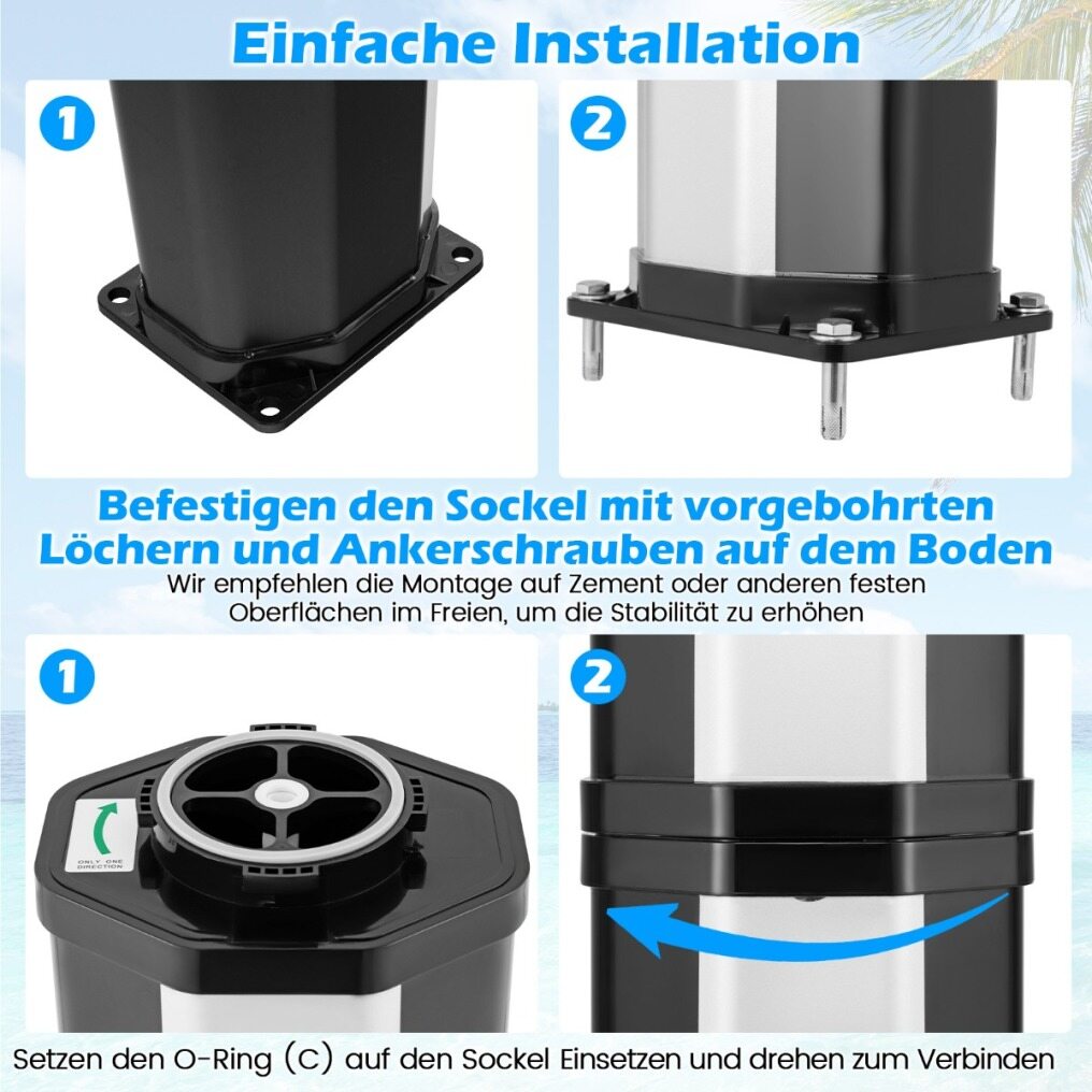 【Simple Installation】It is convenient to mount the base on the ground with pre-drilled holes and 4 anchor screws included. Note: We suggest mounting it on cement or other solid outdoor surfaces to enhance stability. In addition, the top and bottom sections are quick to connect without tools.