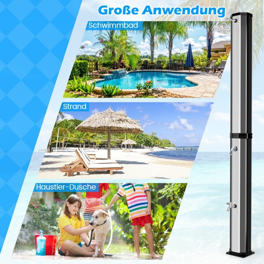 【Well-made details】Made of premium PVC and chrome-plated ABS materials, this solar heated outdoor shower offers durability and style. The sturdy design withstands various weather conditions, promising long-lasting outdoor use.