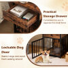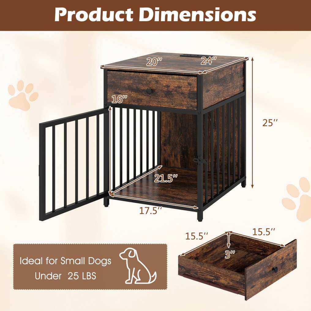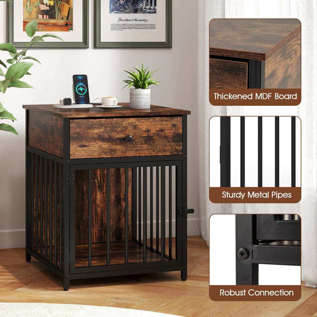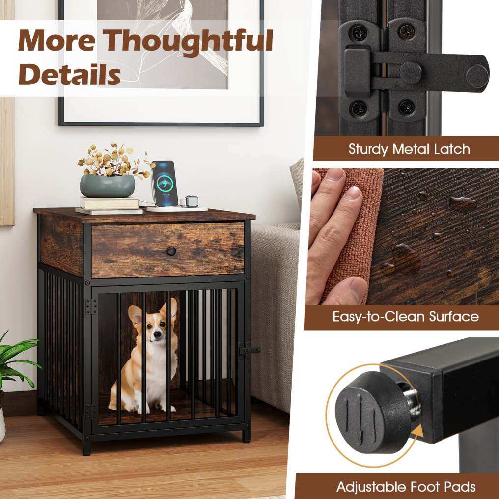 • Charging Station and Storage: The wooden dog kennel features a built-in charging station with 1 USB port, 1 type-C port, and 2 AC outlets, offering convenience for charging lamps and devices. Additionally, it comes with a large drawer, keeping dog supplies and daily necessities organized and easily accessible.