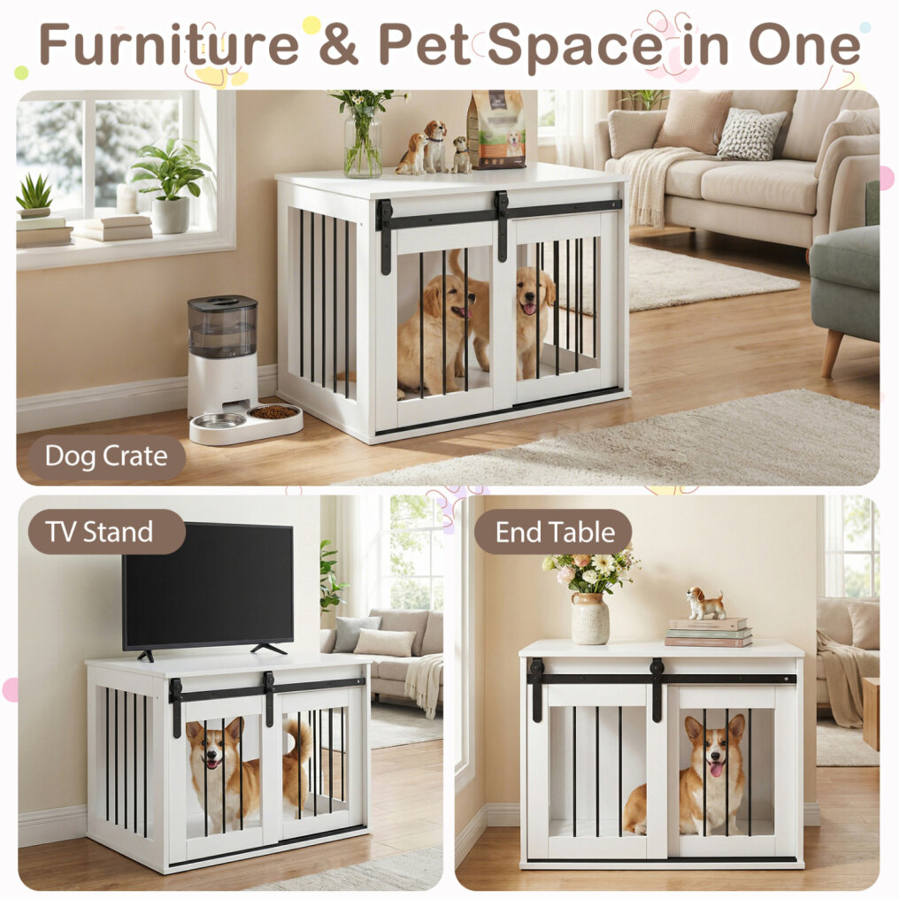 Smooth Sliding Barn Door: This pet crate is equipped with a sliding barn door that glides smoothly on a sturdy metal rail. The door is secured with adjustable locking knobs, making it easy to let your pet in or out. This design also offers you convenient access for effortless cleaning and interaction.