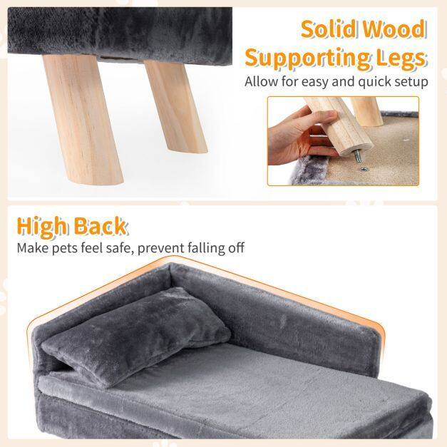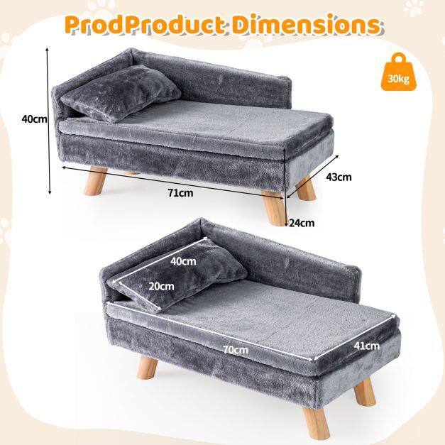 With a robust design featuring solid wood legs, this pet sofa elevates your pets, ensuring proper air circulation beneath the bed while providing a stable and reliable platform. The bed is adorned with a plush soft fabric and filled with a soft sponge, creating a luxurious resting place that your pet will adore. The semi-circular backrest offers a secure and cozy nook for your pet to curl up, increasing their sense of security, while the open front allows easy access without blocking their view. Designed for convenience, the bed comes with a removable padded seat cushion and pillow, making cleaning a breeze and facilitating the addition of a cooling pad for summer comfort (cooling pad not included). Perfectly sized for medium and small pets, this pet bed not only offers a snug retreat but also enhances your home decoration with its stylish appearance. Give your pet the comfort they deserve with our chic and practical Elevated pet bed.