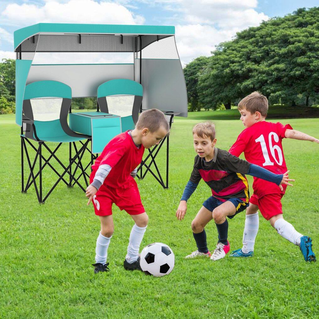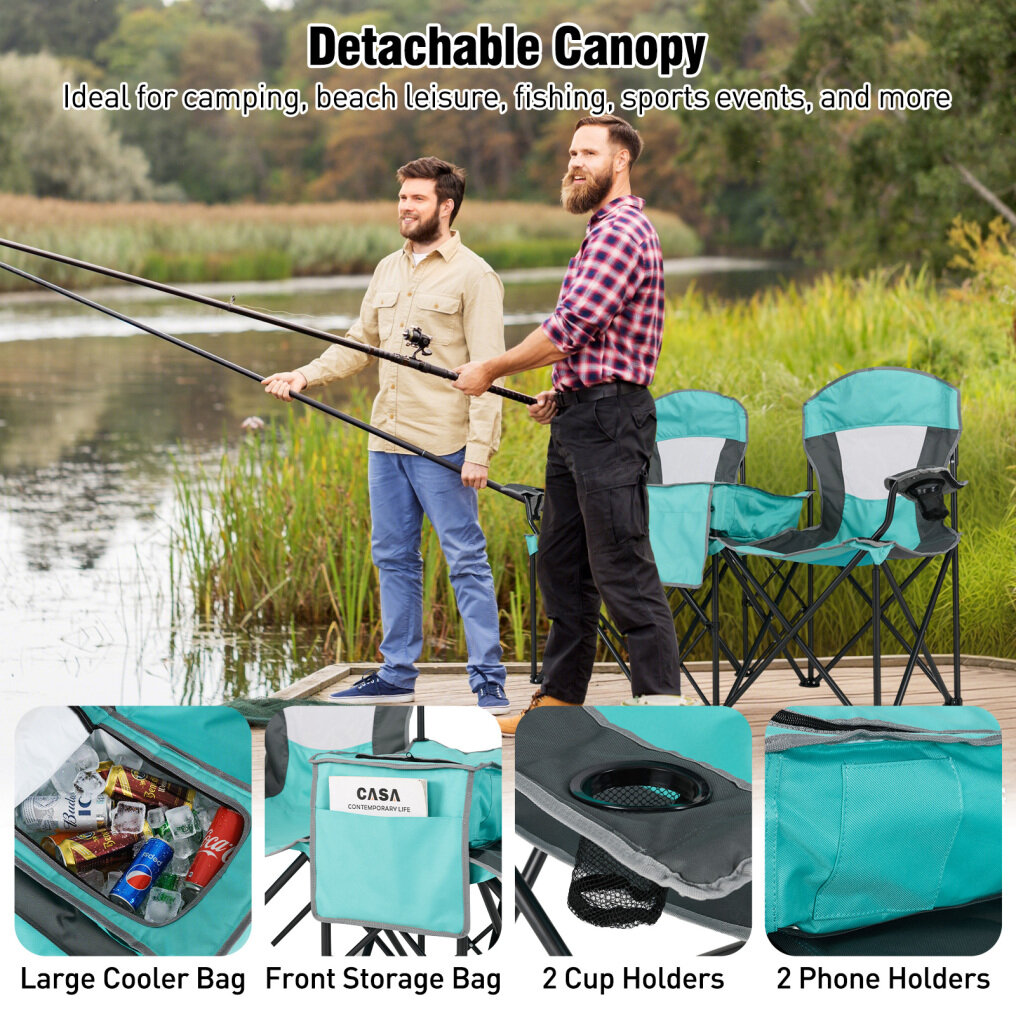 Versatile Storage Options: Stay organized with a large cooler bag between the 2 seats, perfect for keeping beverages cold. Additionally, this chair includes a front storage bag, 2 cup holders, and 2 phone holders, ensuring you have everything you need within reach for a relaxing day out.