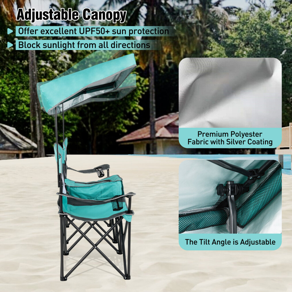 Adjustable Sunshade: This double beach chair features an adjustable canopy, crafted of premium polyester fabric with silver coating, offering excellent UPF50+ sun protection, while the tilting angle is adjustable, allowing you to block sunlight from all directions. Plus, the canopy is detachable for different needs.