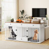 3 In 1 Multifunctional Cabinet: This wooden pet cabinet furniture comes with 2 dog cages and a feeding platform, providing a comfortable haven for your dogs. Besides, It also serves as a TV stand or a side cabinet, which helps you organize daily items and saves space.