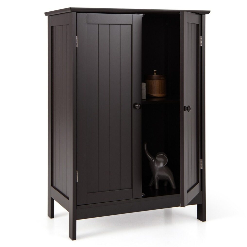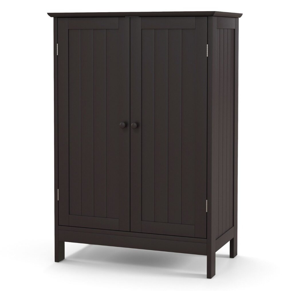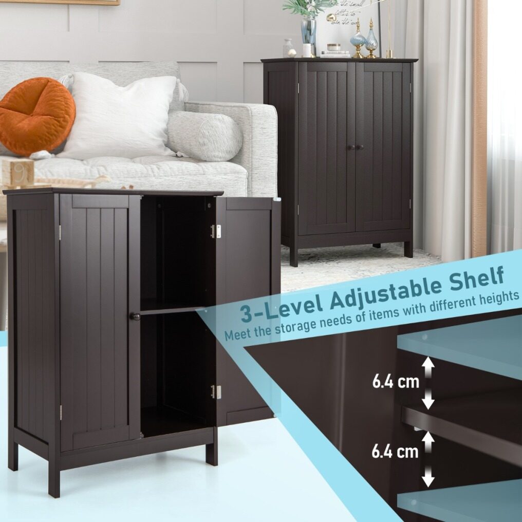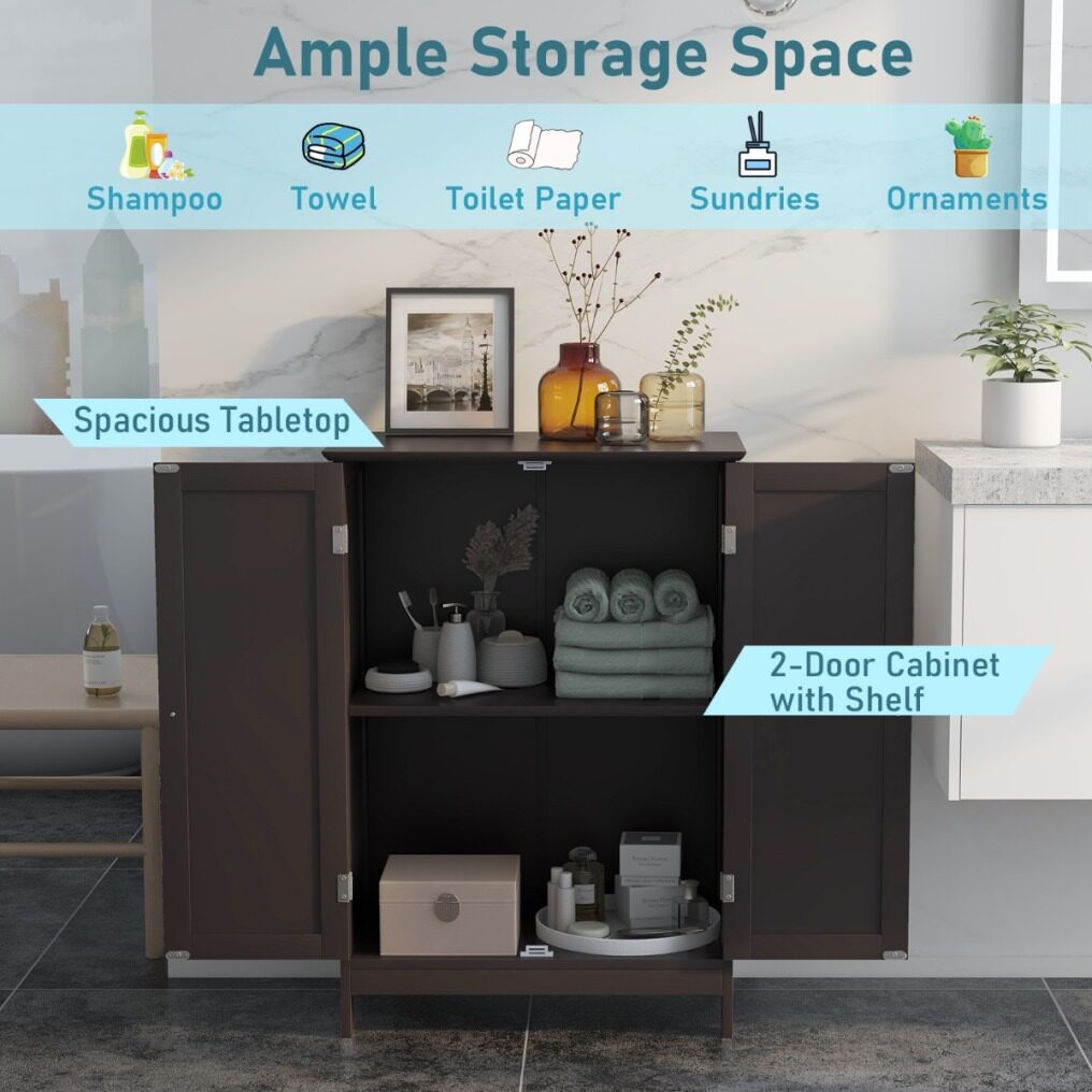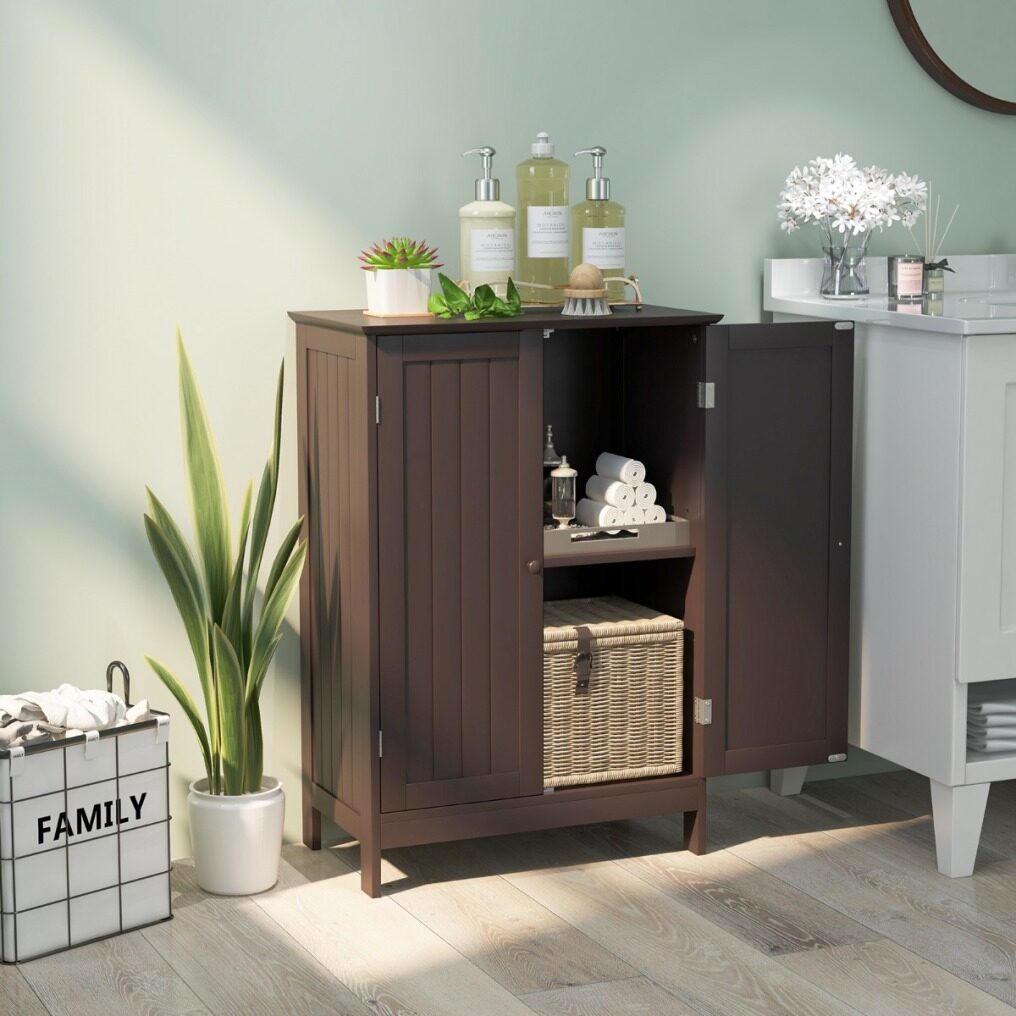 With a spacious top and adjustable shelf, this freestanding cabinet provides ample room to display and store your plants, photos, decors, books, toiletries and more. The double doors with decorative line modeling not only keep your items away from dust, but also add style to your room. Apart from being used as a bathroom storage cabinet, it can also be placed in your living room, kitchen, hallway, bedroom or anywhere you need extra storage space. What's more, the sturdy MDF construction and anti-toppling design make this bathroom floor cabinet durable and safe to use. And the cabinet surface is easy to wipe clean.