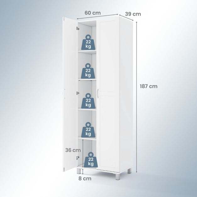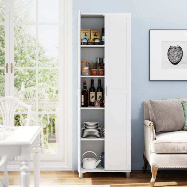 Clutter-free Storage Solution: The storage cabinet features 5 storage shelves to enlarge storage capacity and classify daily supplies, such as books, documents, and kitchen utensils, capable of catering to different needs. Plus, this double door cabinet gives you ample private storage space, thus to keep a neat and tidy room.