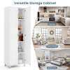 Have you found a favored floor cabinet to own a tidy and clean room? Our freestanding storage cabinet would be one of the appropriate choice for you. 5 storage shelves provide abundant storage space for plenty of daily items. More, 3-position adjustable shelf can well suit different storage needs. Stable support legs brings long-lasting reliable service to you. Meanwhile, the storage organizer is equipped with anti-toppling device for higher stability. All in all, this modern storage cabinet is a charming complement for living room, bedroom, and kitchen, etc.