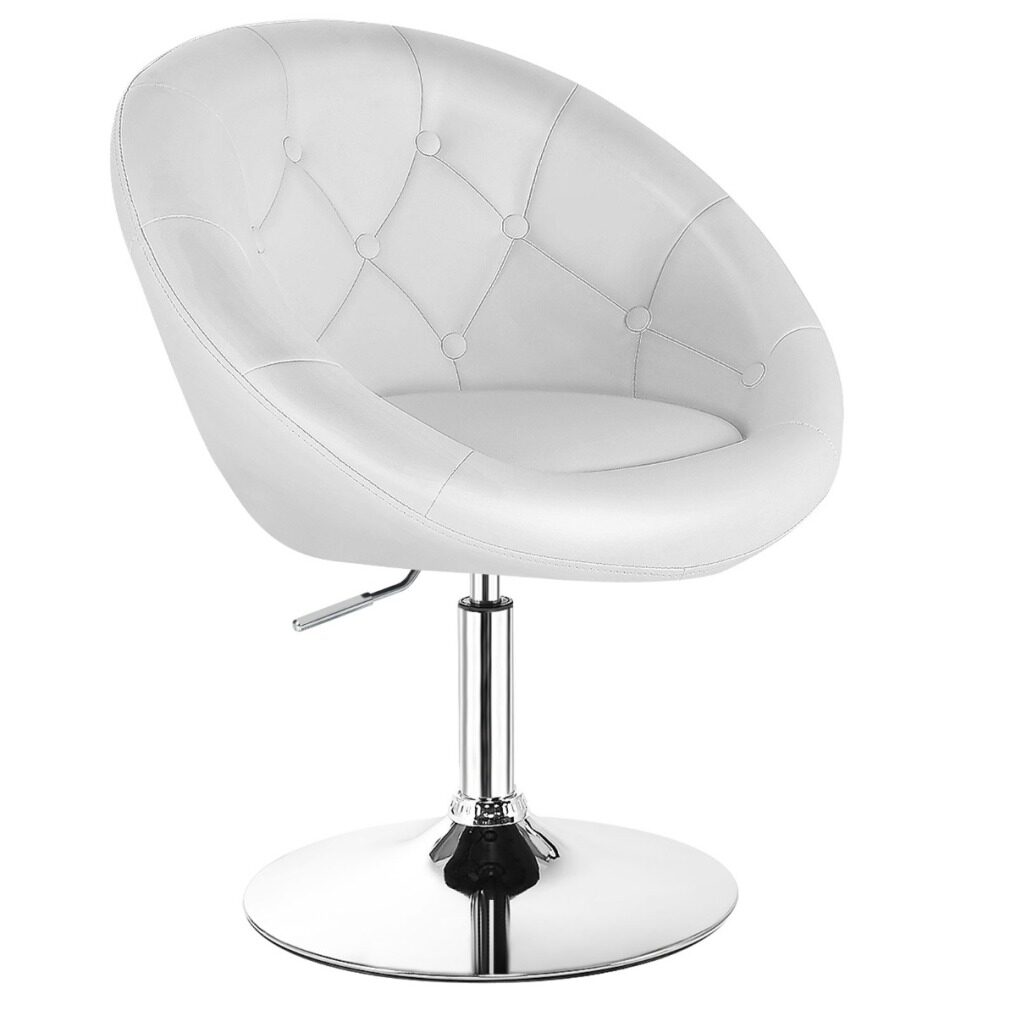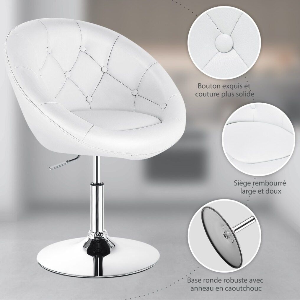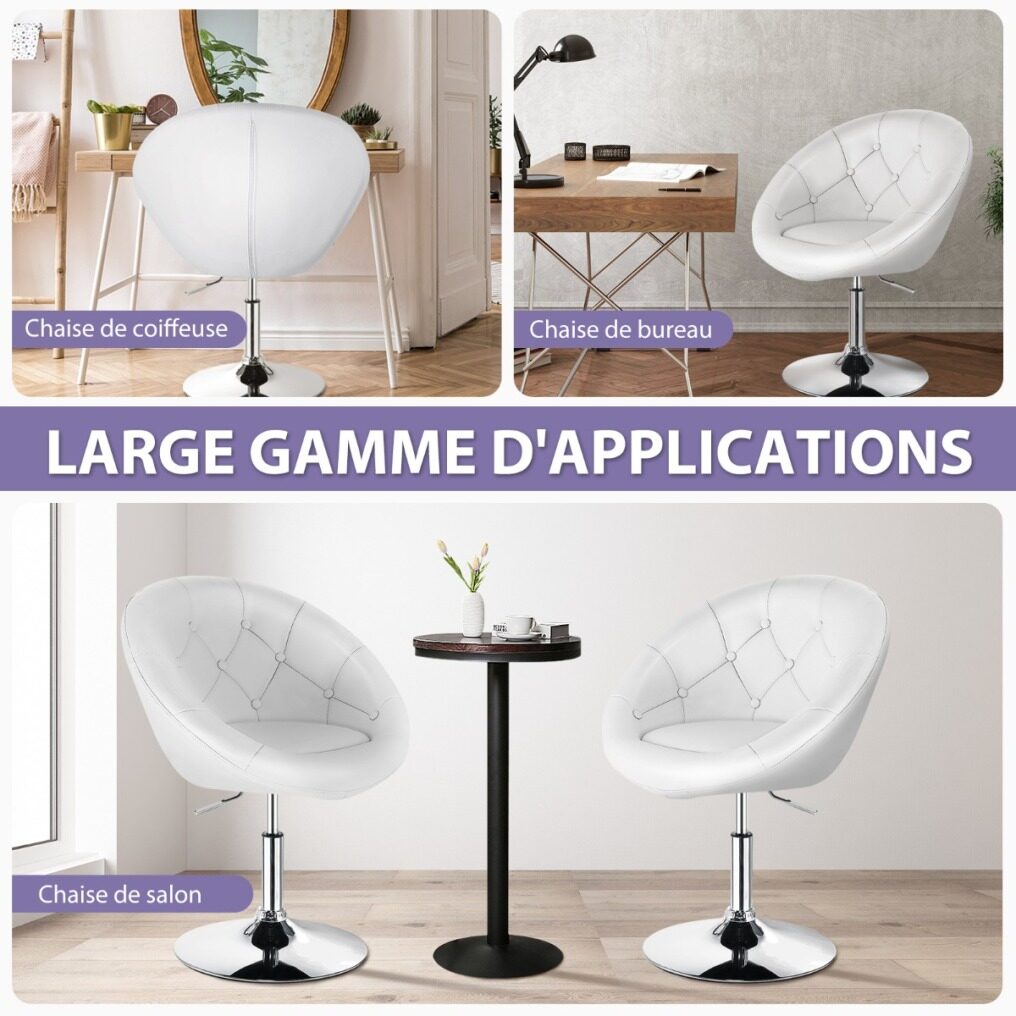 Thanks to the curved backrest and soft seat, this swivel chair allows you to enjoy the comfort of its ergonomic shape. Equipped with a height-adjustable gas lift, you can adjust the seat height from 41 to 55 cm. Made of a high-quality metal frame with rust-proof electroplating, this accent chair is durable and stable, so it can bear up to 150 kg. At the same time, the non-slip rubber ring protects your floor from scratches and provides additional stability. Thanks to its fashionable and elegant appearance, this dressing chair is perfect for various occasions, such as office, living room, kitchen and more.