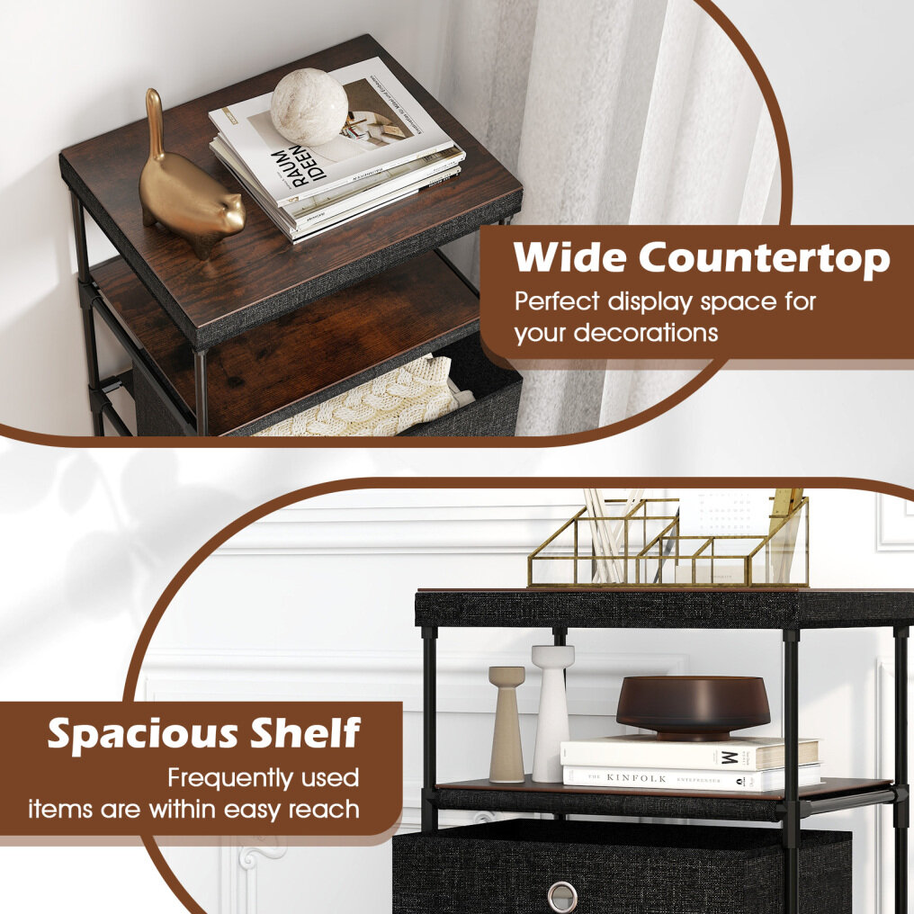 ● Industrial Wood Top: The fabric storage tower boasts an industrial wood top that combines delicate aesthetics with great longevity. This high-quality surface is easy to maintain, ensuring it stays in pristine condition for years to come.
