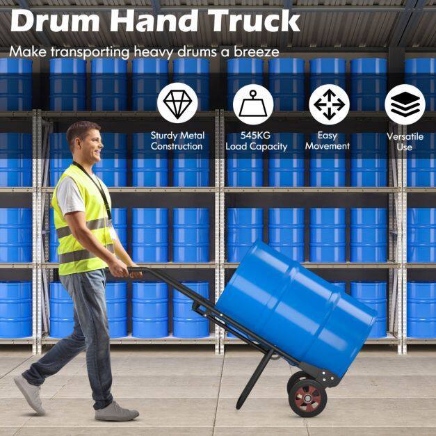 Heavy-Duty Drum Cart: This heavy-duty drum cart is an essential tool for transporting heavy drums easily and efficiently thanks to its sturdy metal construction that can support loads of up to 545 kg.