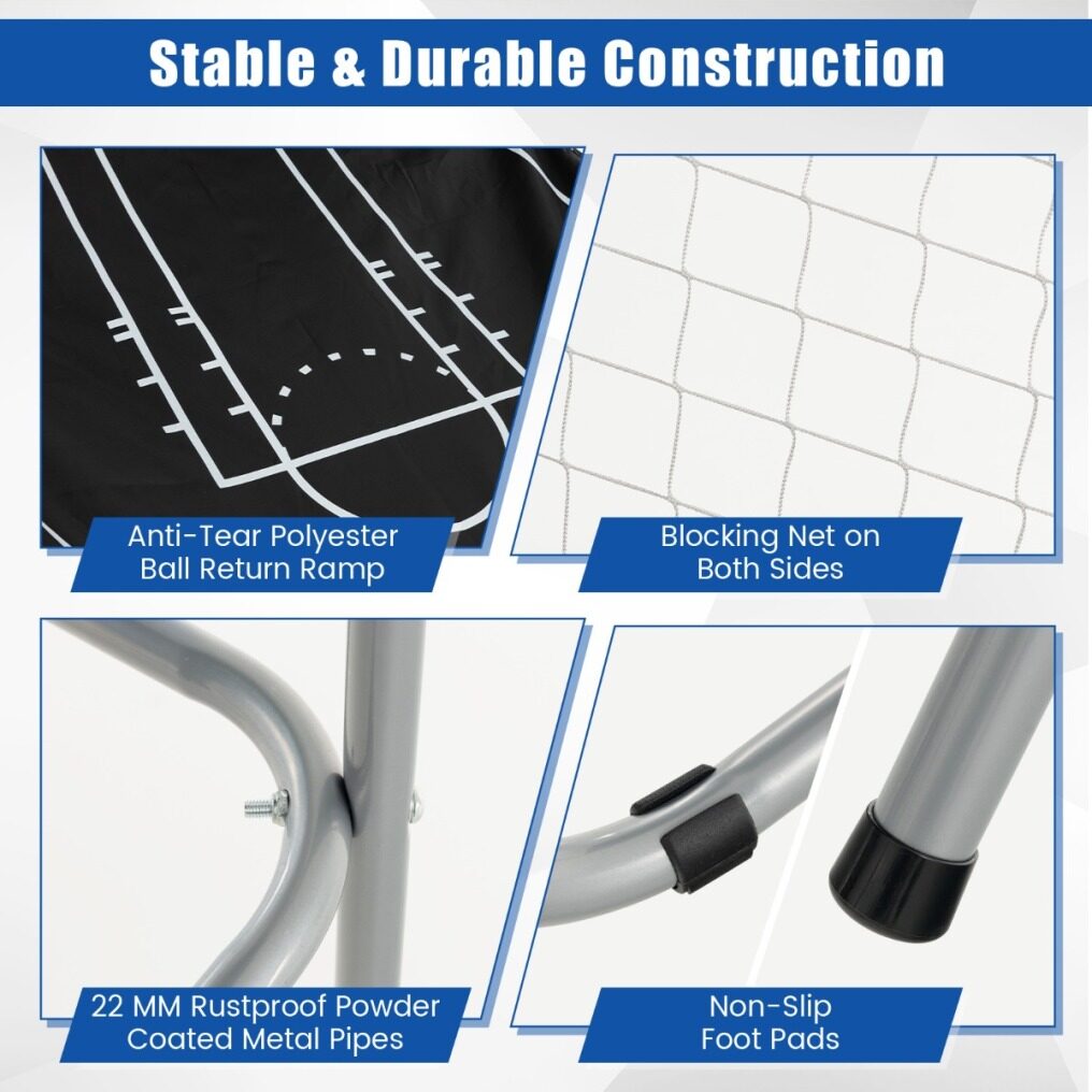 ● Premium Construction: The rustproof powder coated metal frame and non-slip foot pads ensure stability during intense play, while the sturdy and shatterproof backboard can withstand countless shots. Also, the high-quality backboard comes with 2 12" metal rims with net.