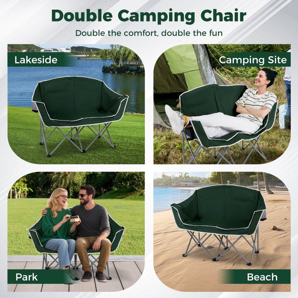 ● Heavy-Duty Metal Structure: The folding loveseat boasts a robust metal structure designed to support up to 660 lbs effortlessly. Additionally, this chair comes with enlarged anti-slip foot pads, making it a reliable seating solution for your adventures.