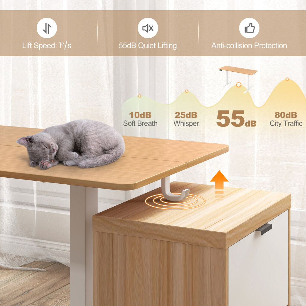 Electric Standing Desk with 3 Memory Heights and 2 Hanging Hooks and Cable Holes-Natural