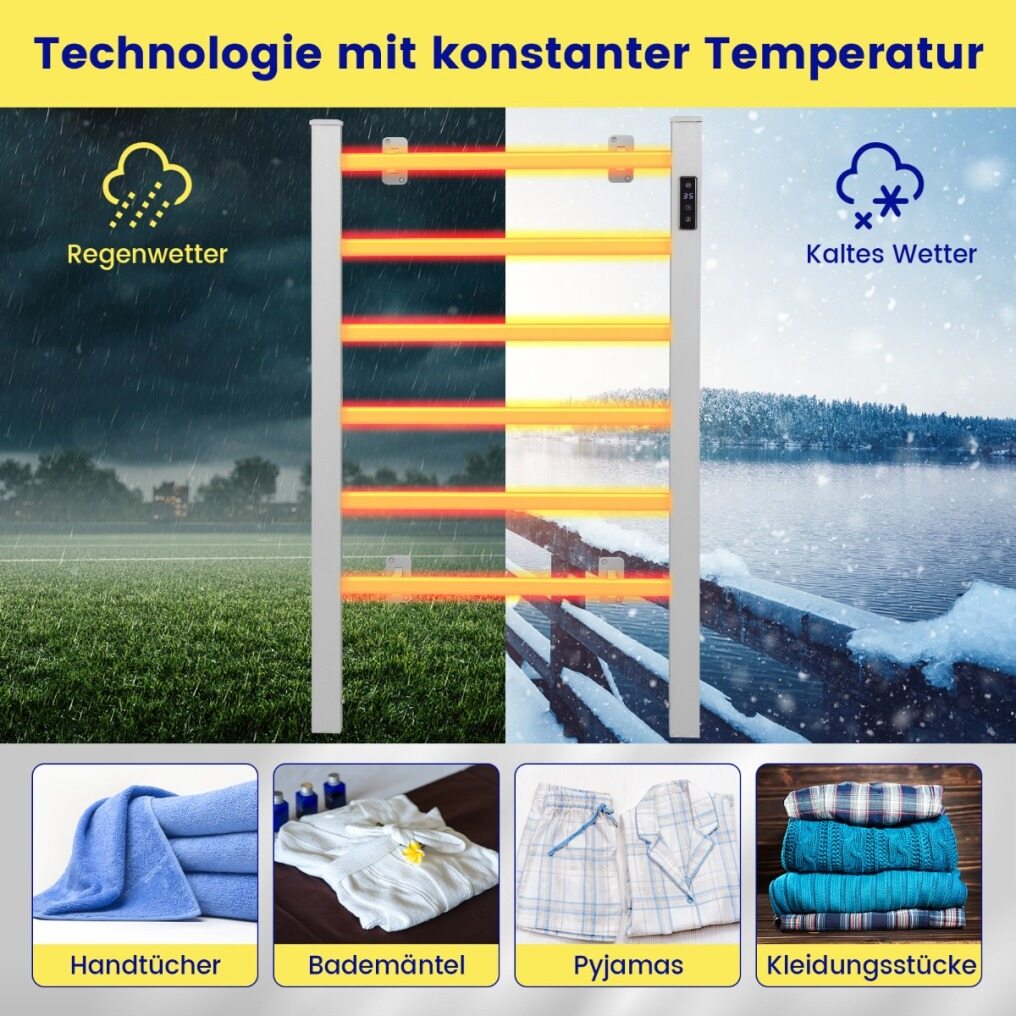 Ideal for drying and heating towels, socks, pajamas, clothes, etc.