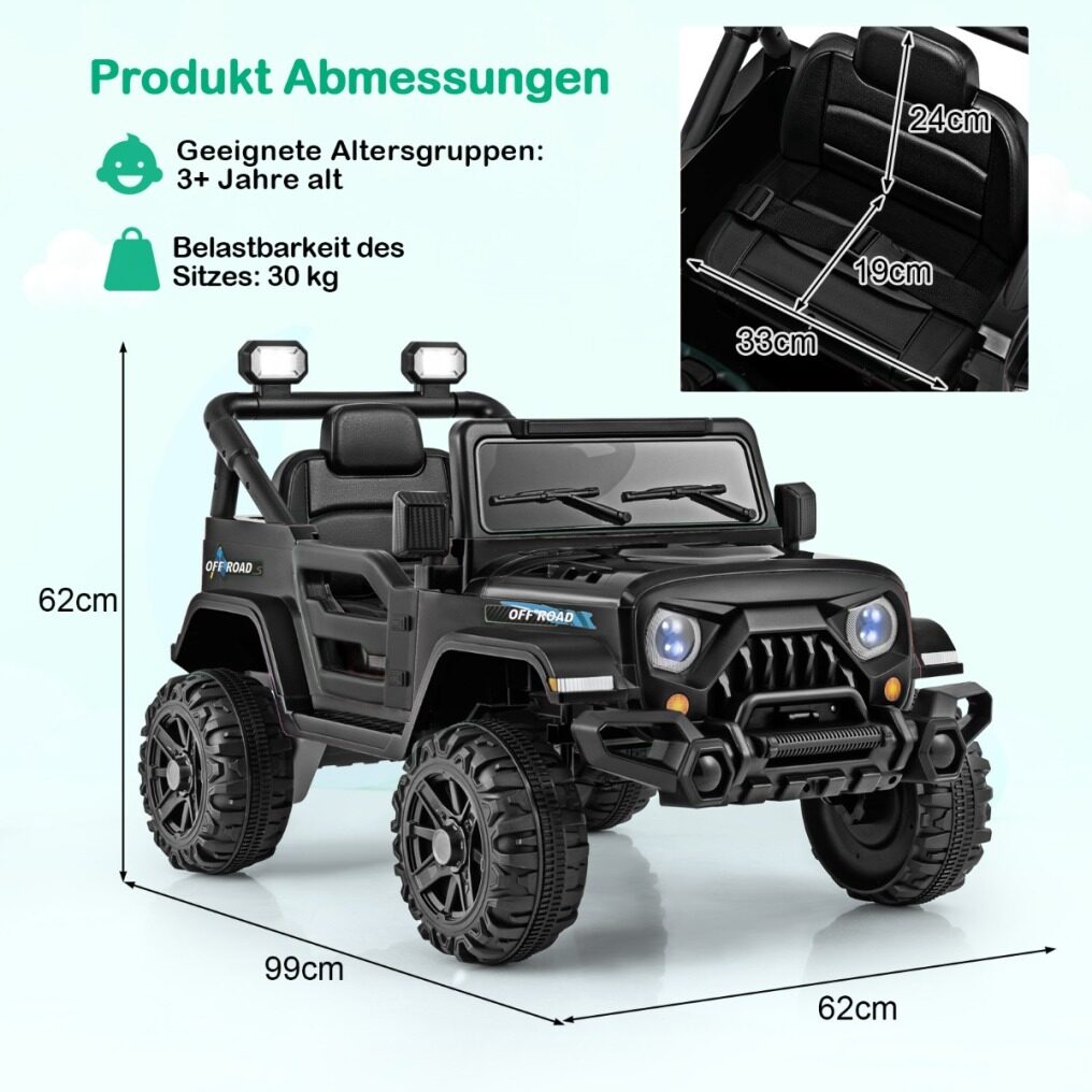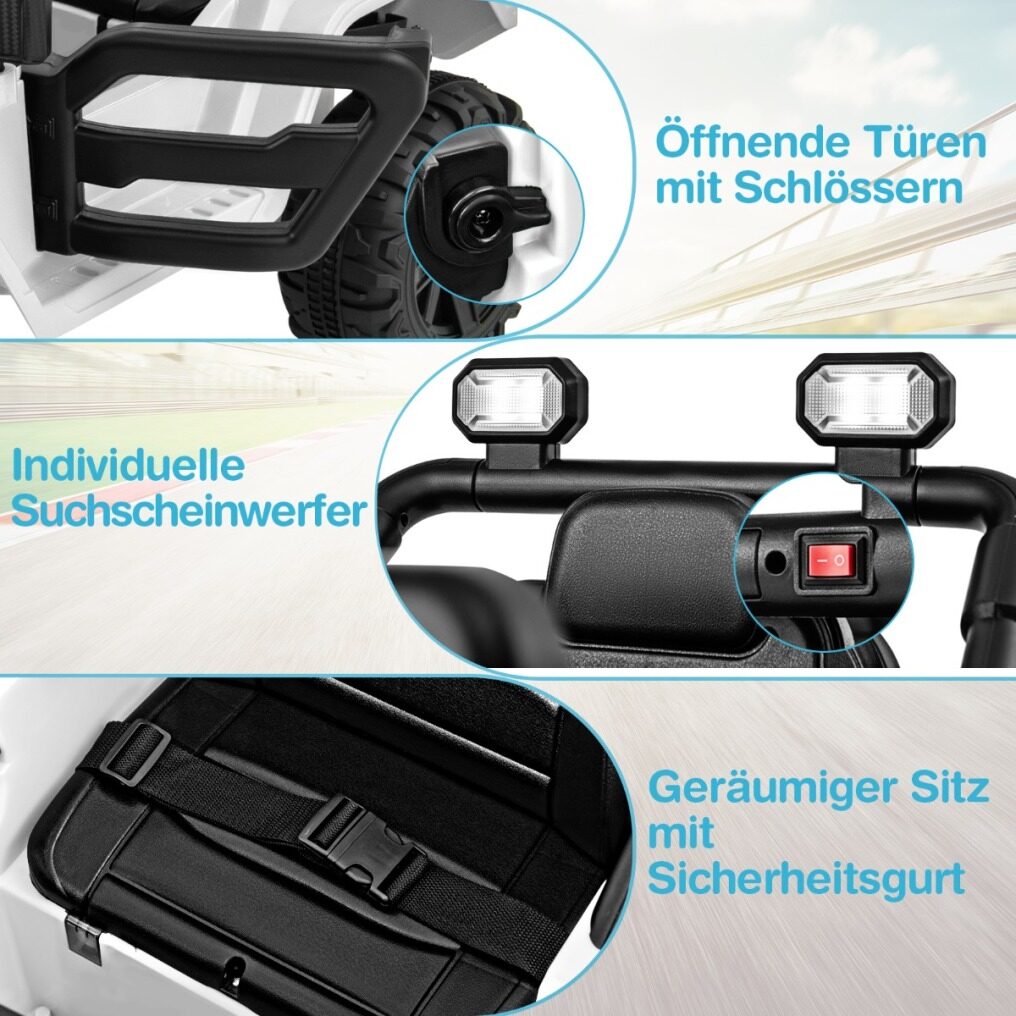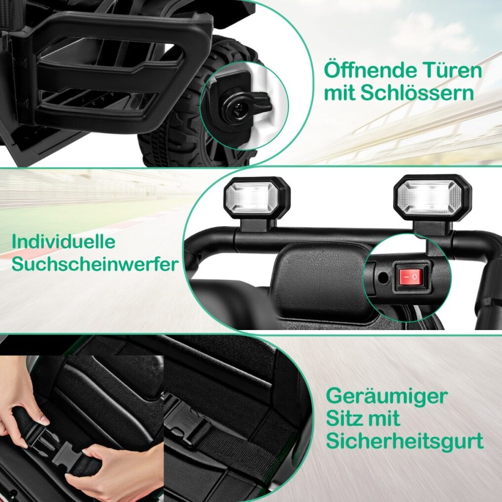 Safe and Reliable Construction: Made of BPA-free material, the electric off-road vehicle features an adjustable seat belt and lockable doors for durability and safety. It meets high standards and is a reliable and perfect gift for boys and girls ages 3 and up.