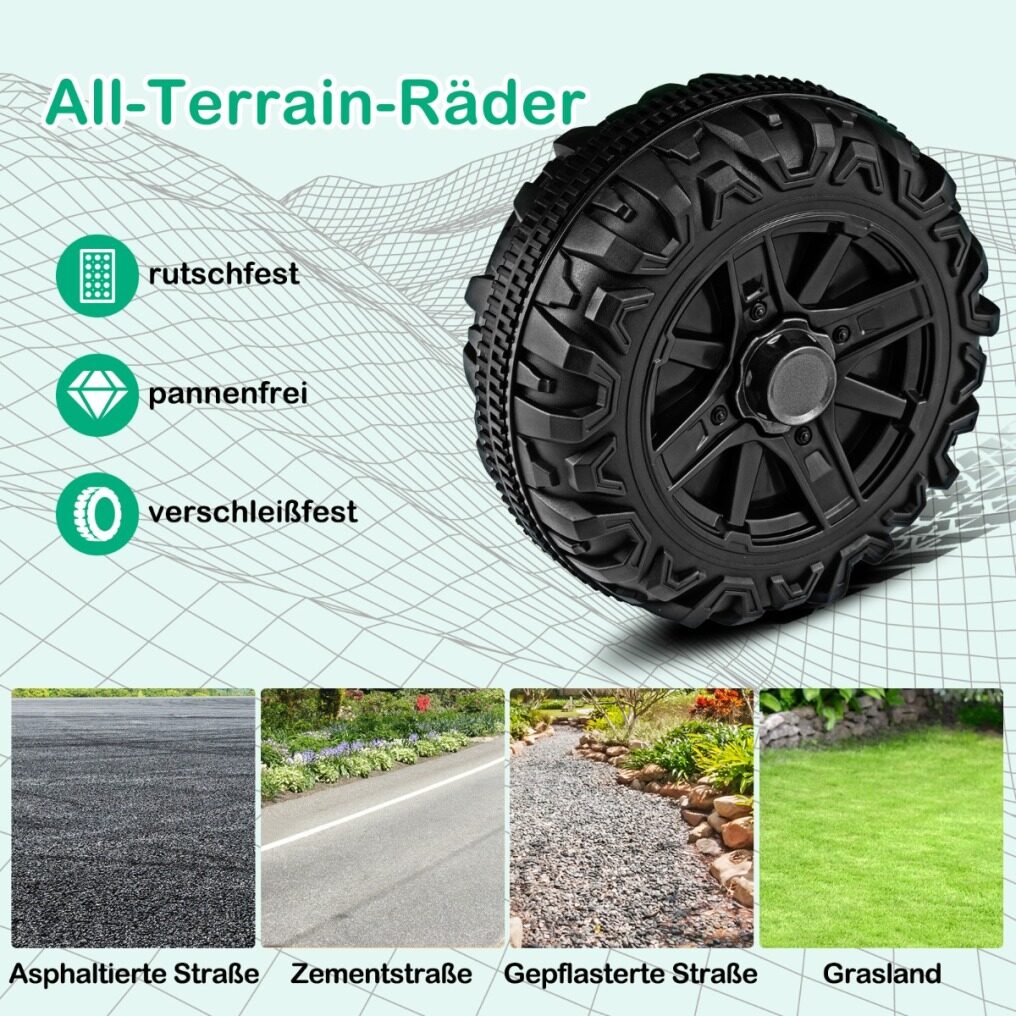 Drives on asphalt roads, concrete roads, cobblestone roads, grassland and more