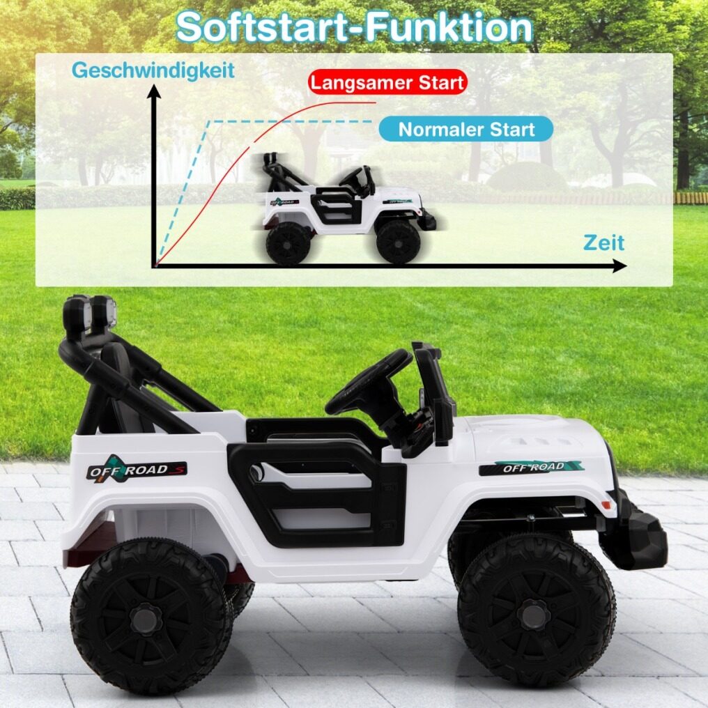 Kids' Ride-On Vehicle with 12V Battery: This truck features two powerful 35W motors and can travel at speeds of 3 to 6 km/h. The 12V battery provides extended playtime and endless fun for kids, with the added slow start feature providing smooth acceleration when starting off.
