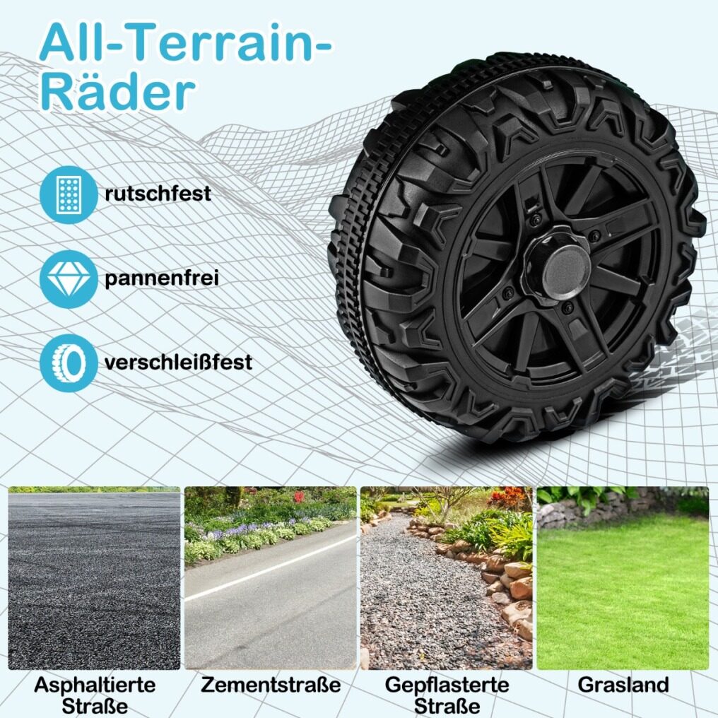 Enjoy adventures on any terrain: This battery-powered ride-on toy features all-terrain, puncture-proof wheels and can handle a variety of surfaces, including asphalt, cement, cobblestones, and grass. So kids can explore and play wherever they want, and their adventures are limitless.