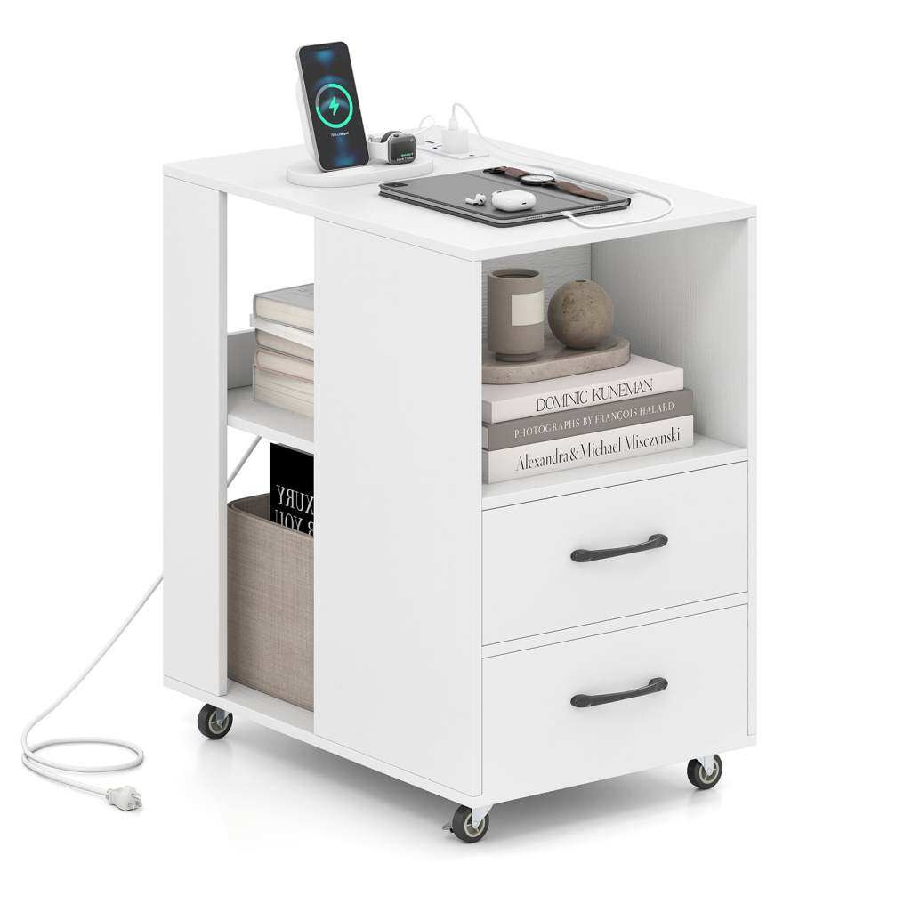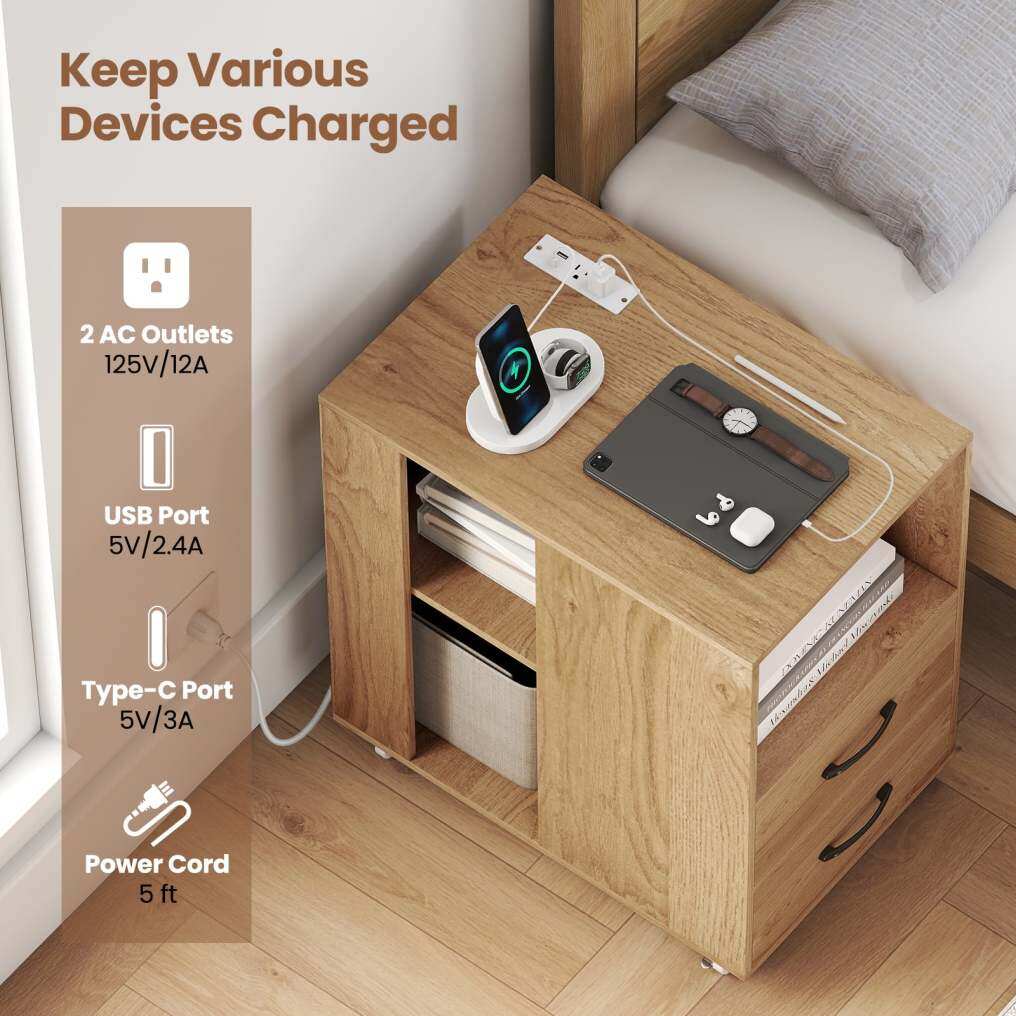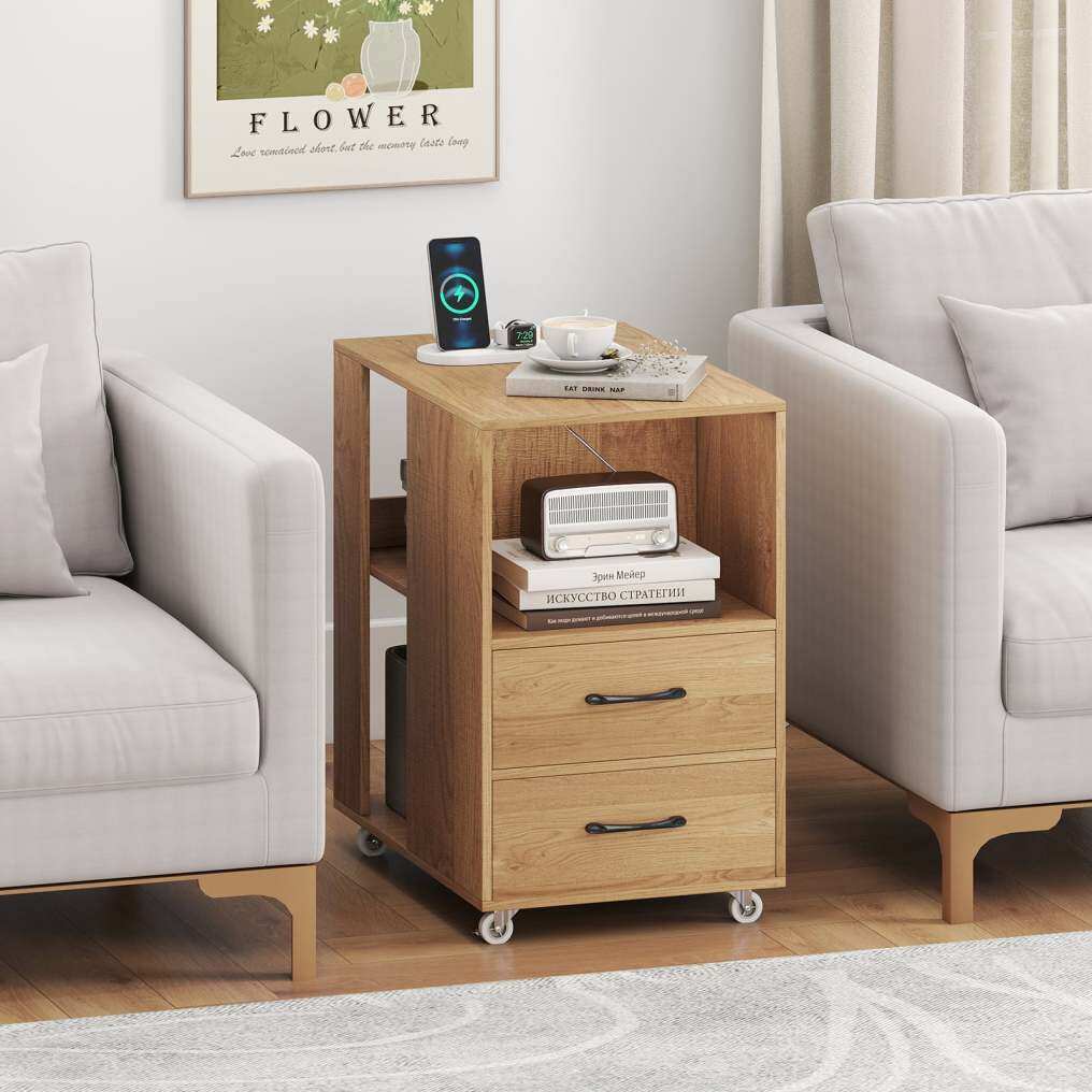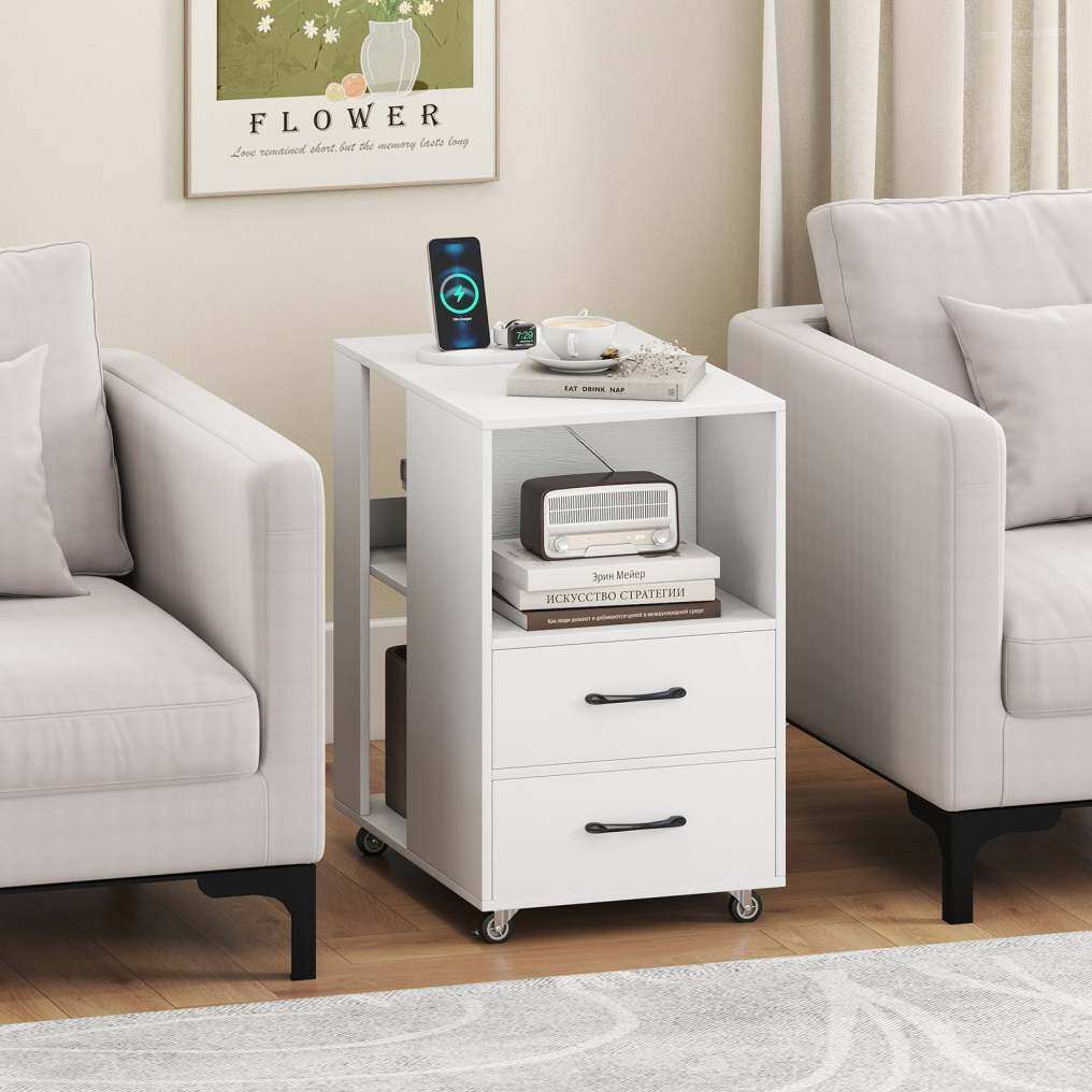 ● User-friendly Details: Made of well-processed thickened board, the end table has a easy-to-clean surface and ensures a stable structure. In addition, smooth metal slides and convenient handles make it easy to reach your items in the drawers.