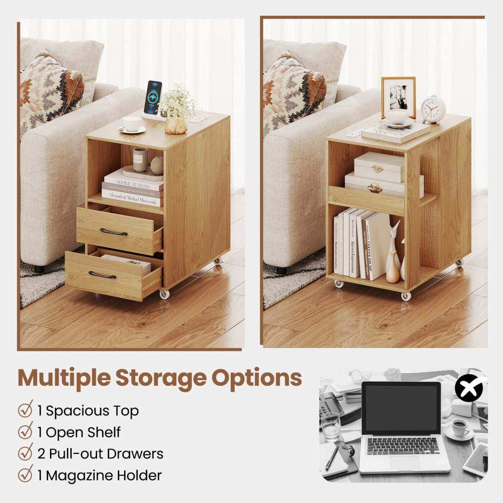 ● Easy Movement & Fixing: Featuring 4 universal wheels with mute design, this side table can be moved effortlessly from room to room. In additions, 2 of the wheels feature brakes, providing stability when needed and ensuring a secure solution for your storage needs.