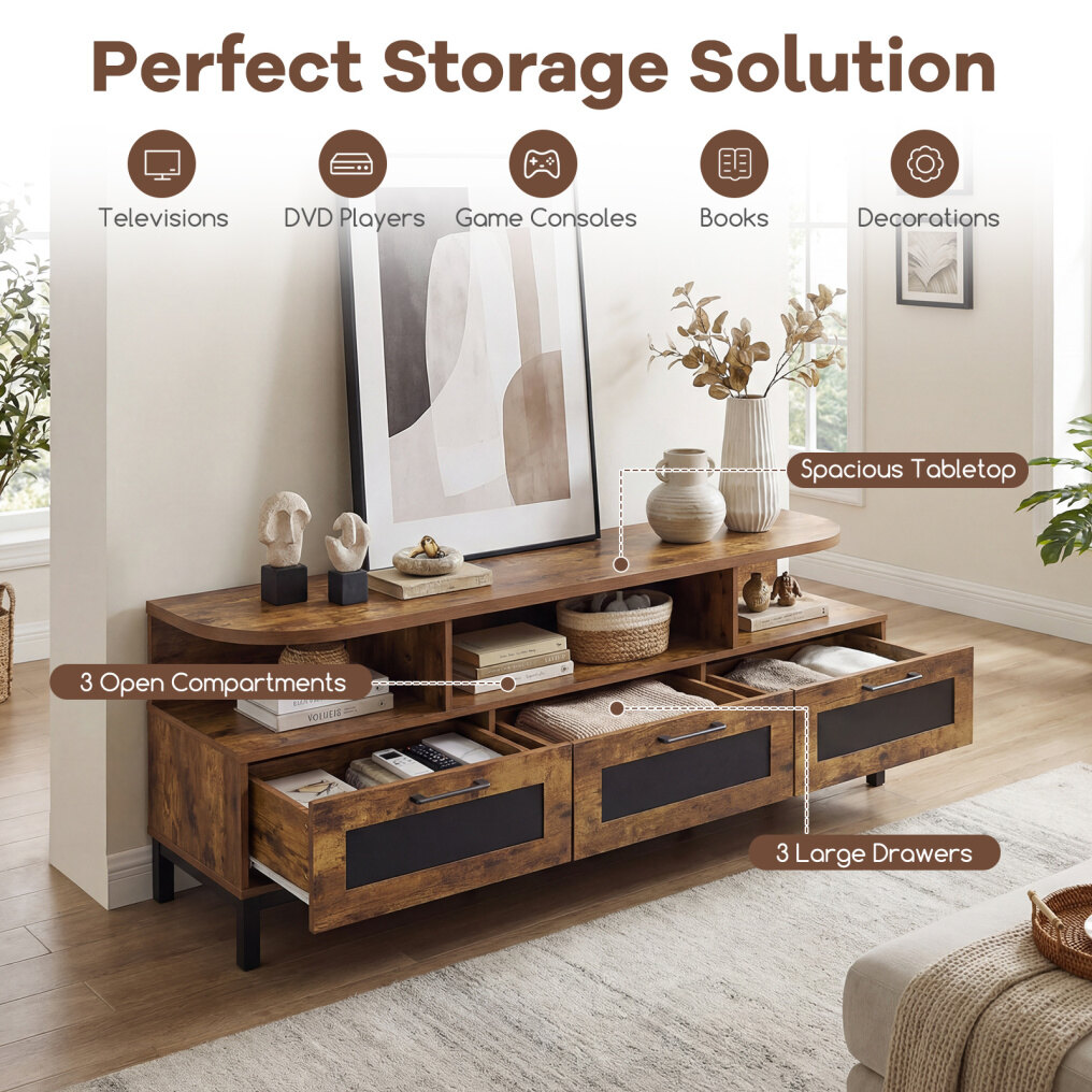 ● Perfect Storage Solution: This TV cabinet is designed with 3 open shelves, perfect for housing DVD players, gaming consoles, and books. Plus, 3 slide-out drawers help keep media equipment and accessories organized and out of sight.