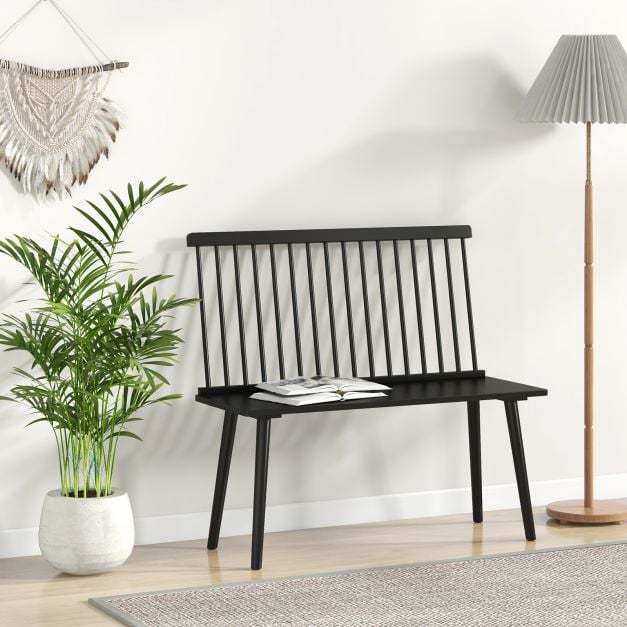 Its spindle back provides exceptional support, ensuring a comfortable seating experience. The versatile design allows for easy adaptation to any space as the backrest can be removed. Made entirely from durable natural rubber wood, this dining bench can support up to 200kg and is equipped with anti-slip foot pads for added stability. Not limited to the dining room, it can also serve as seating for 2 in various rooms of your home. The timeless charm of the sturdy Windsor bench is evident in its delicate spindle back, bringing a touch of tradition and elegance to your space. Assembly is a breeze with the included accessories and clear manual. With its painted finish, maintenance is hassle-free with a smooth surface.