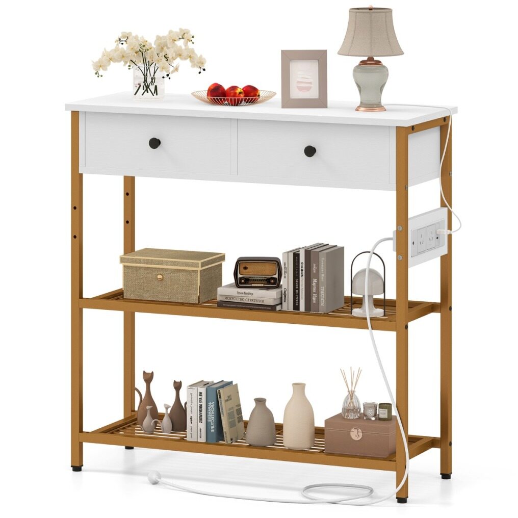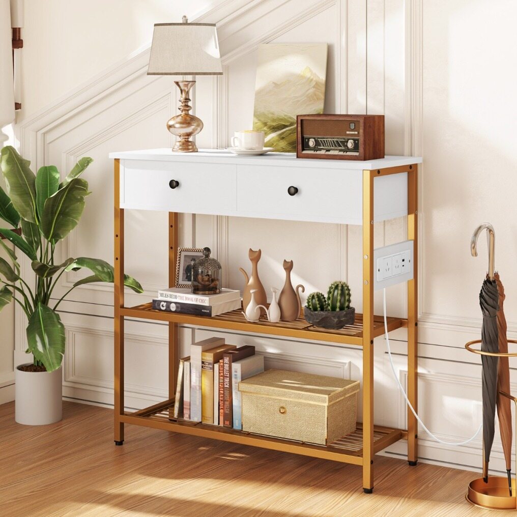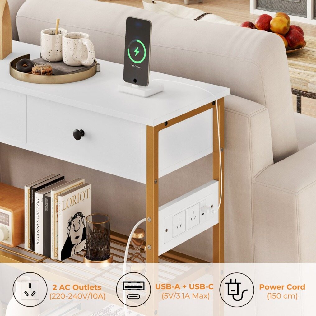 Charging Made Simple: The console table is more than just storage - it’s your new charging hub! With a built-in power strip featuring 2 AC outlets, a USB port, and a Type-C port, keeping your devices powered up has never been easier. And the power strip can be installed at left or right at will.