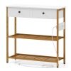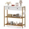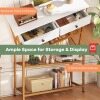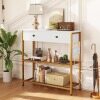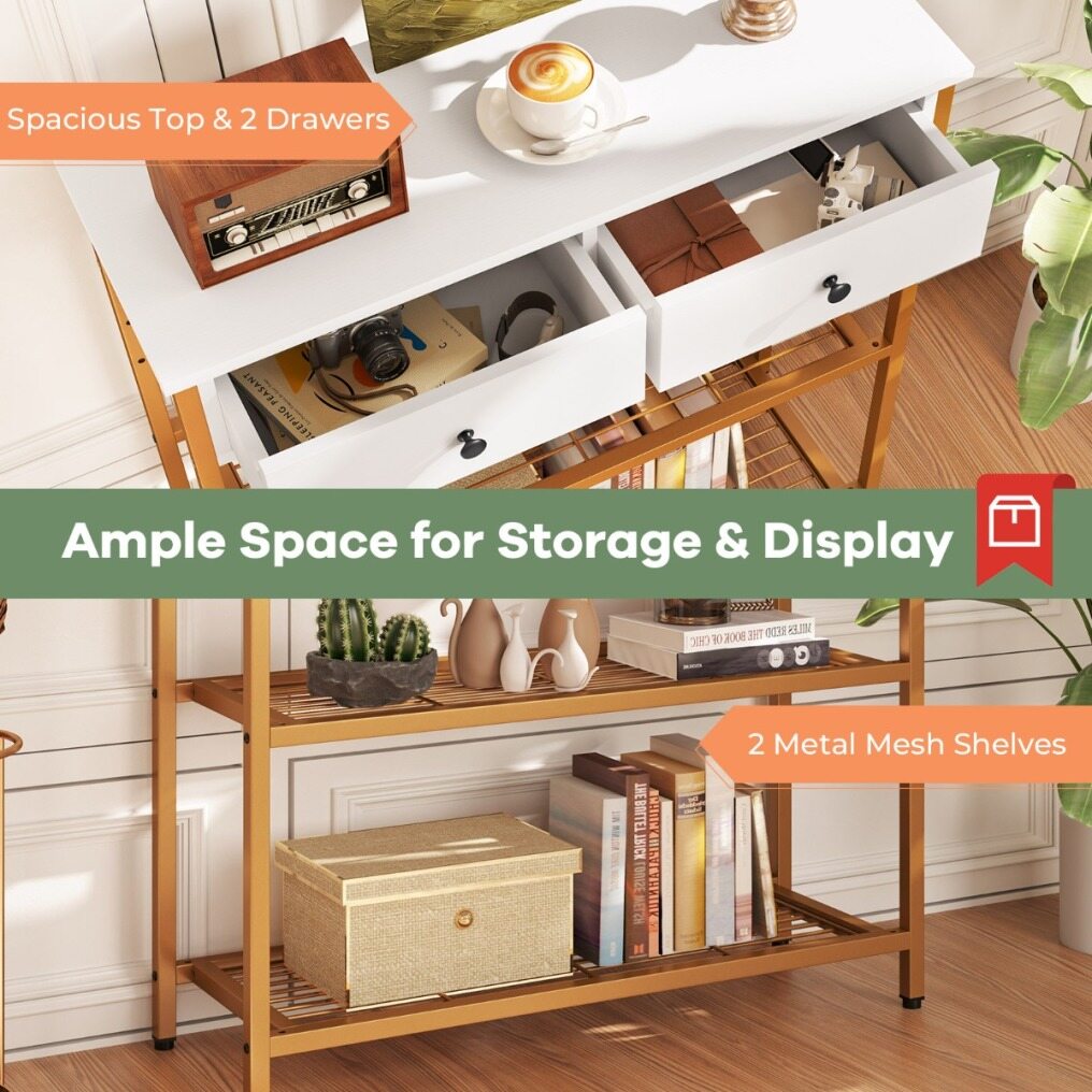 Maximize Your Space with Ease: This entryway table is your ultimate organizer, boasting 2 metal mesh shelves, a generous top surface, and 2 drawers. Say goodbye to clutter and hello to a beautifully organized living room!