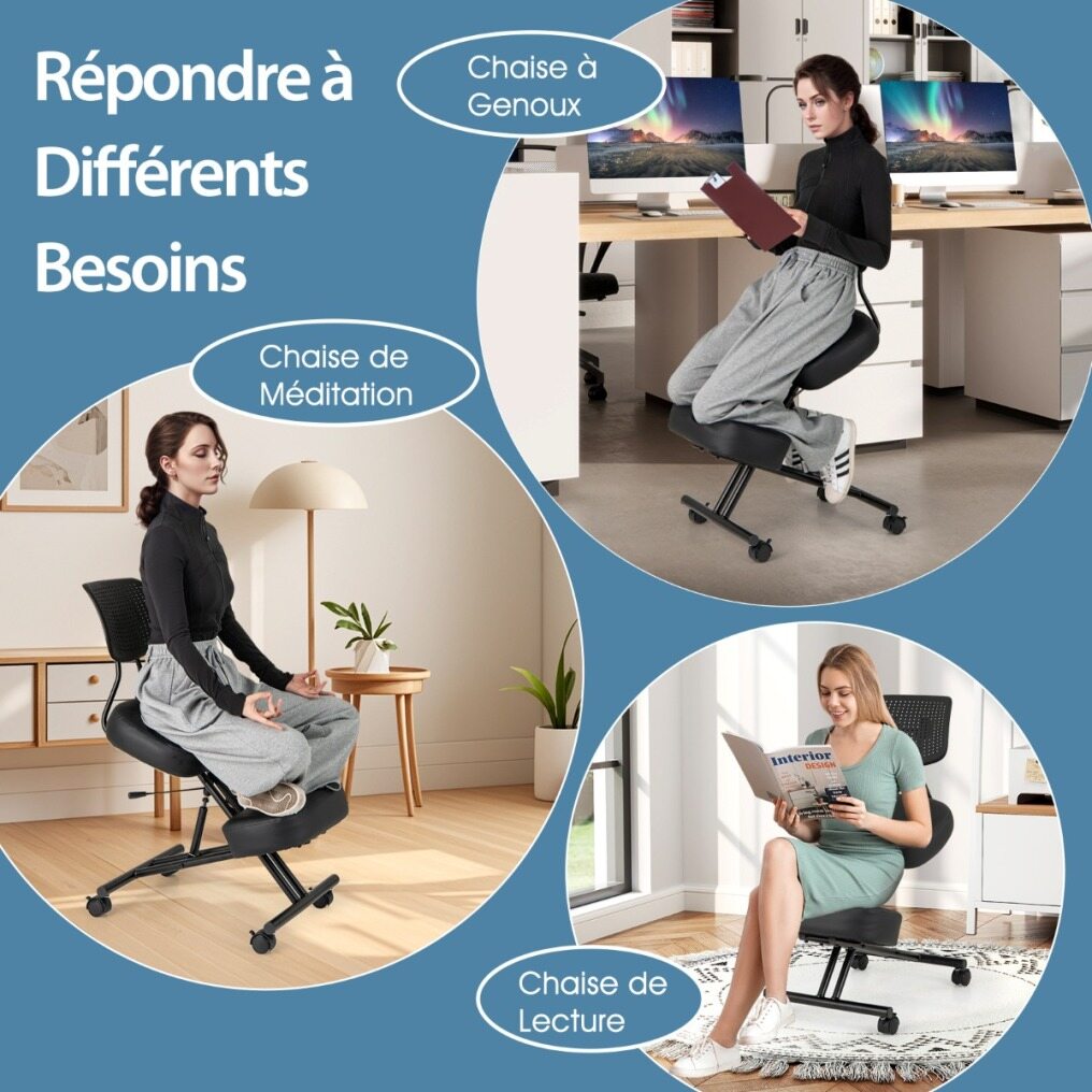 Prioritizing Posture and Health: Equipped with a contoured backrest, the ergonomic kneeling chair alleviates back pain and corrects detrimental posture habits like slouching or leg crossing. Moreover, the knee support redistributes weight from the lower back to the hips and legs, creating a balanced seating position.