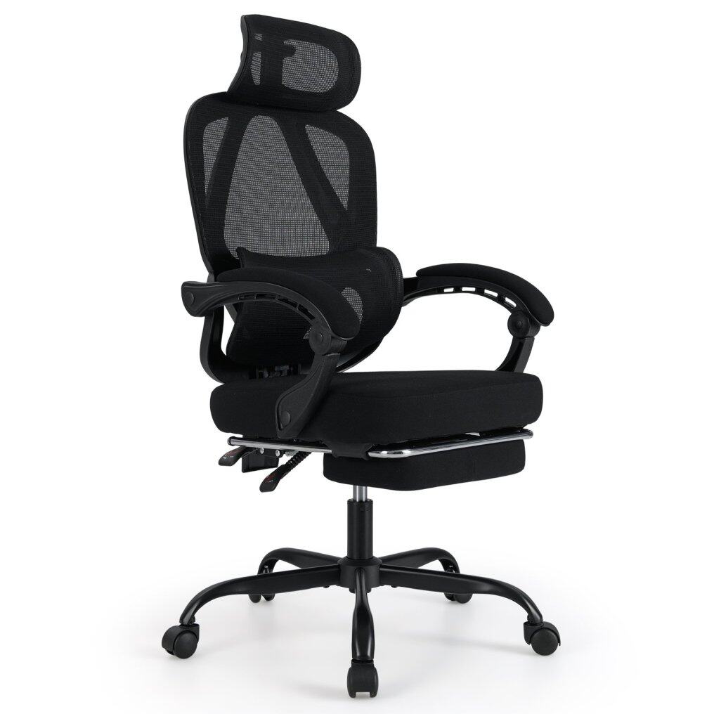 Tilting Back and Retractable Footrest: Equipped with a retractable footrest, our office chair gently cradles your legs during those well-deserved naps. Its supportive sectional backrest seamlessly adjusts and locks at any angle between 90° to 135°, so that you can work or relax at an optimal position.