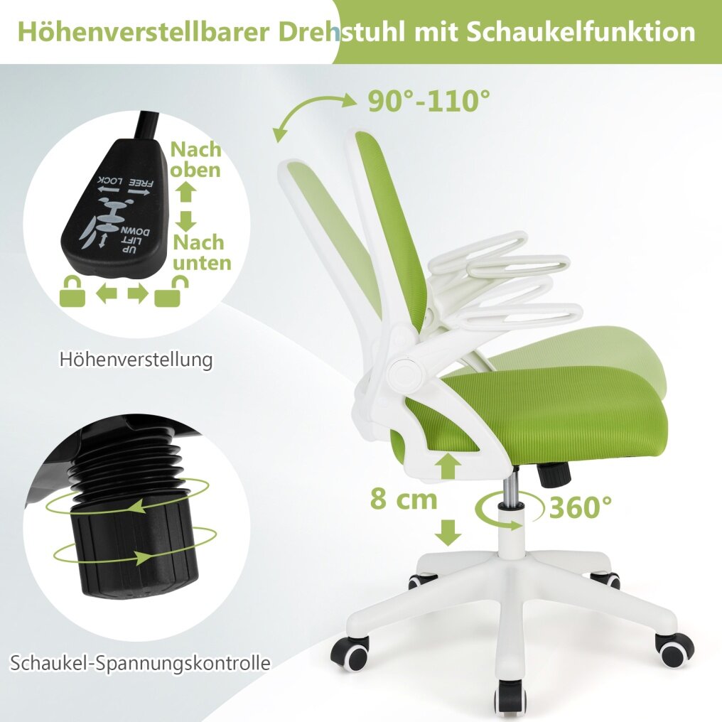 Folding armrests: Optimize your workspace with the 90° folding armrest design, which allows the ergonomic desk chair to slide effortlessly under your desk to maximize space. Ideal for tight workspaces, this feature increases the functionality of your office.