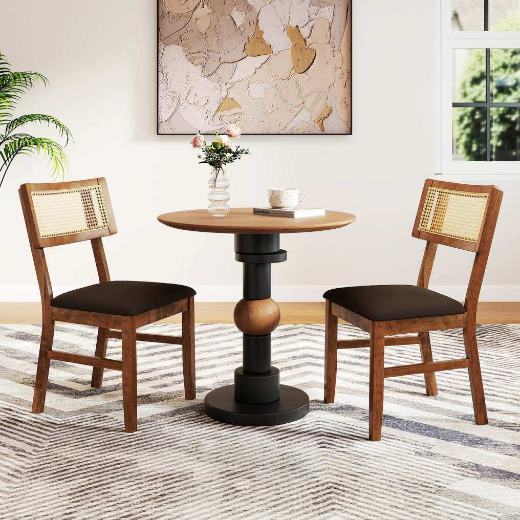 Chic boho accent: The handwoven PVC rattan backrest lends these boho chairs a warm character and charm, instantly elevating your dining area. Whether for a sunny brunch or a candlelit dinner, their relaxed elegance creates an airy, stylishly curated atmosphere.