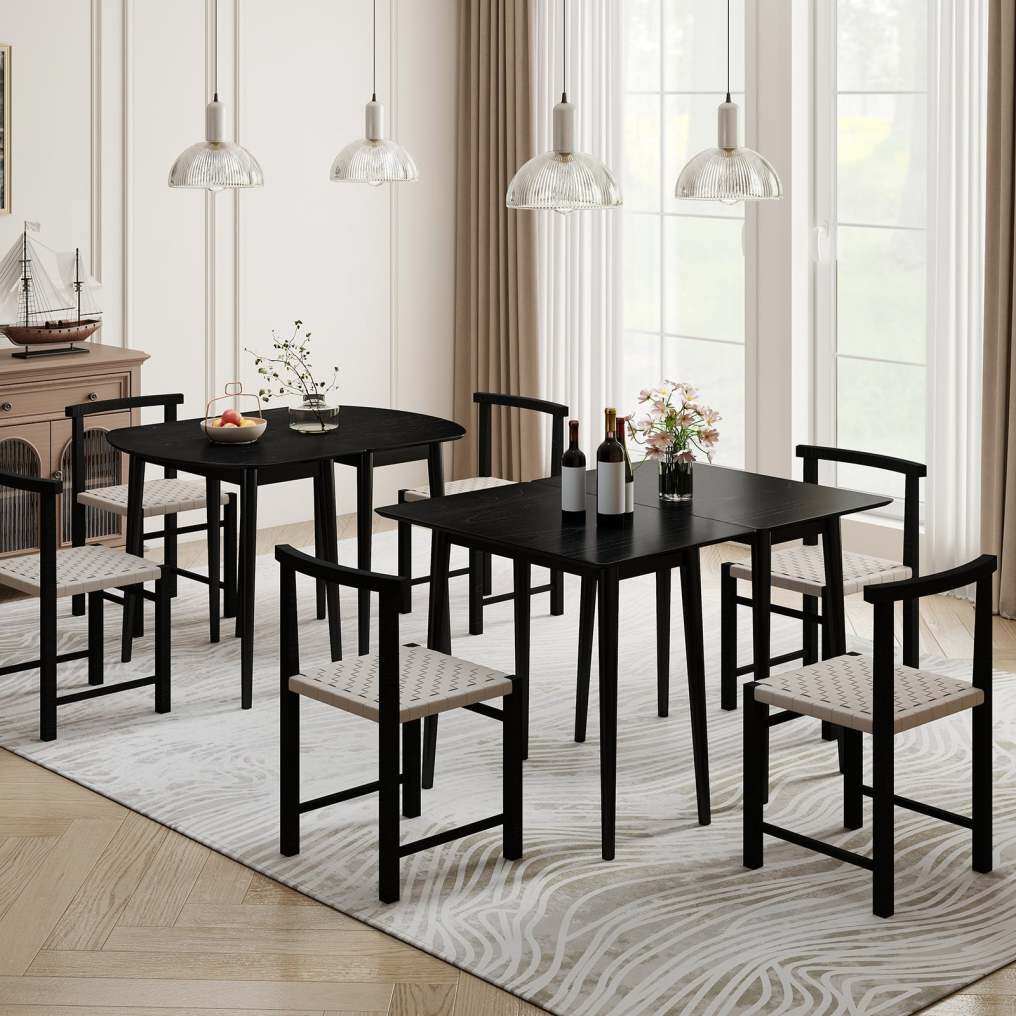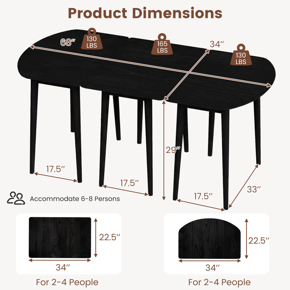 ● Flexible Configurations: This innovative extendable dining table set includes 2 half-round tables and 1 rectangular table, allowing you to use each unit on its own or connect all three to fit your space and occasion needs. It could cater from intimate dinners to big gatherings with friends or family.