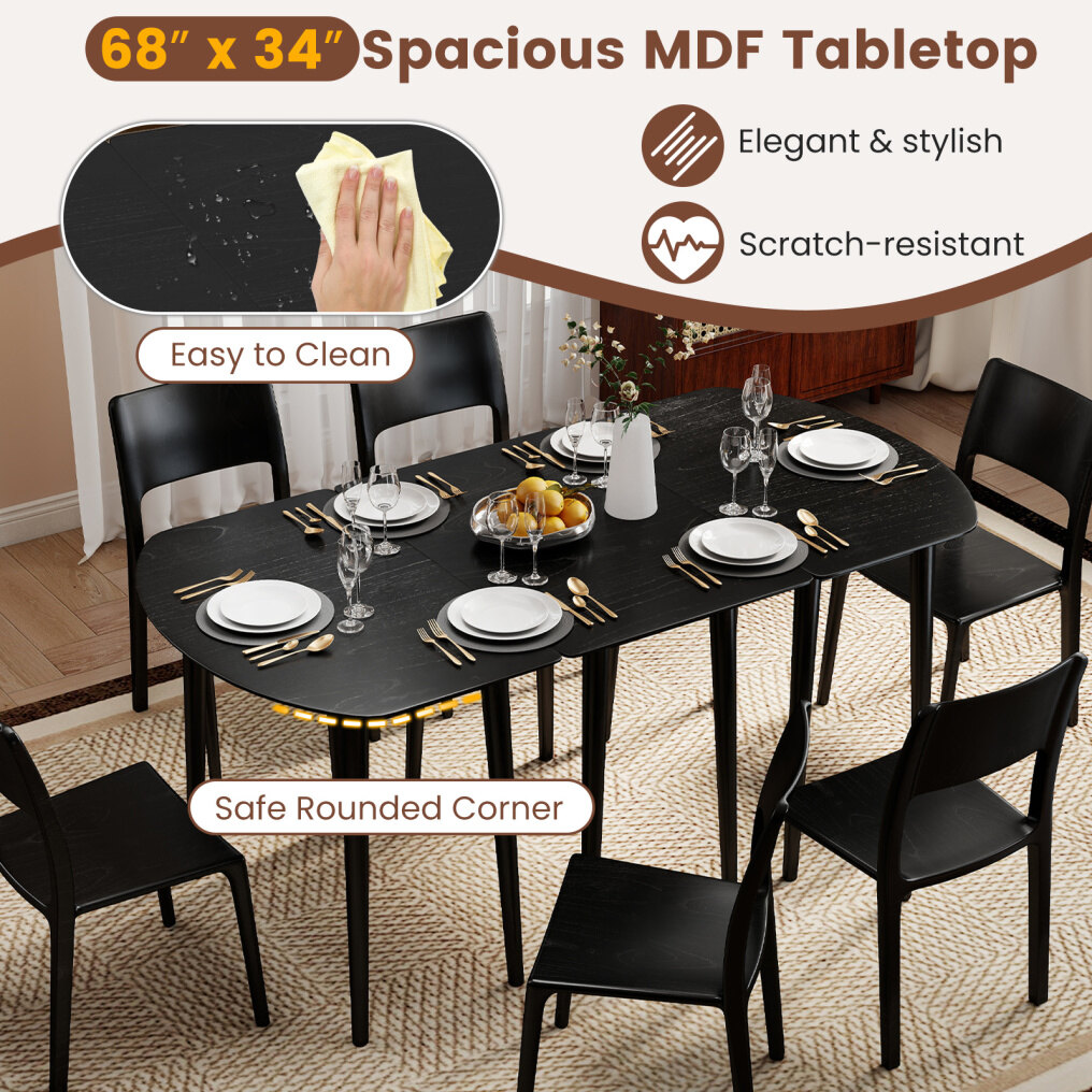 ● Easy Assembly: Measuring a spacious 68" x 34" x 29" (L x W x H), this modular dining table could comfortably accommodate 6-8 people for all your hosting needs. Plus, with its simple structure and clear illustrations in the user's manual, it is easy to set up.