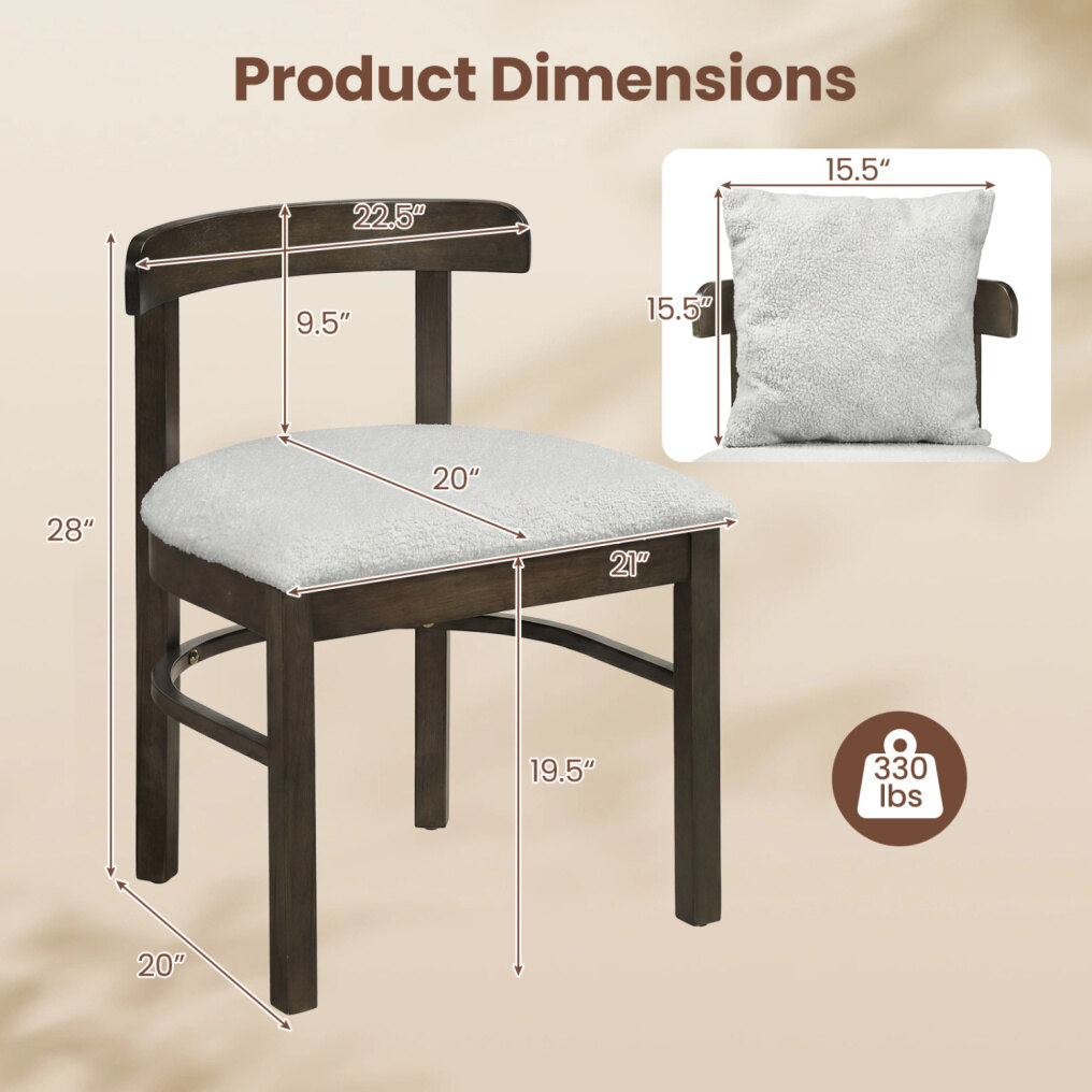 Solid Rubber Wood Frame: Mainly made from solid rubber wood, each armless kitchen chair offers remarkable stability and strength without warping, ensuring long-lasting performance. Also, the natural material is safe for indoor use.