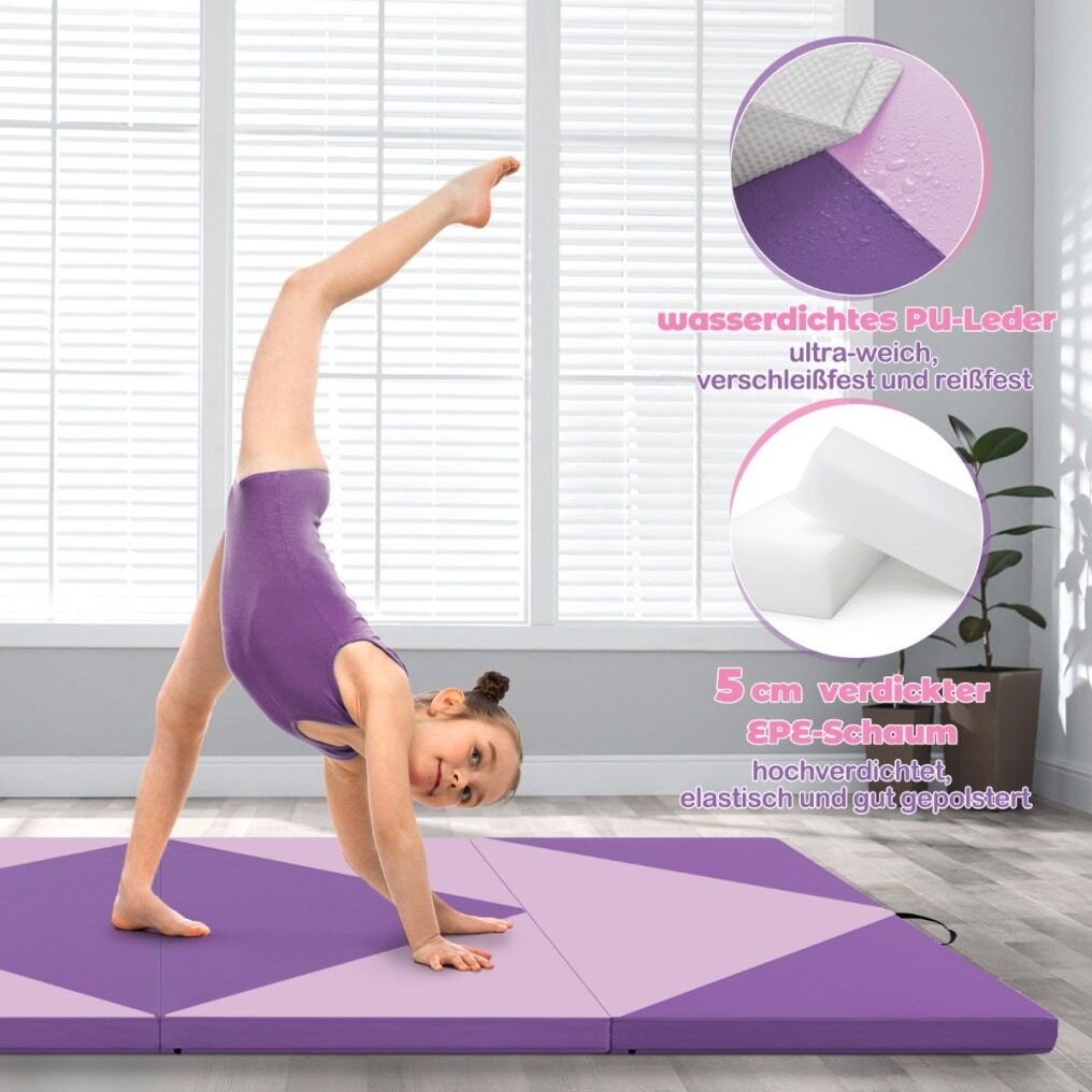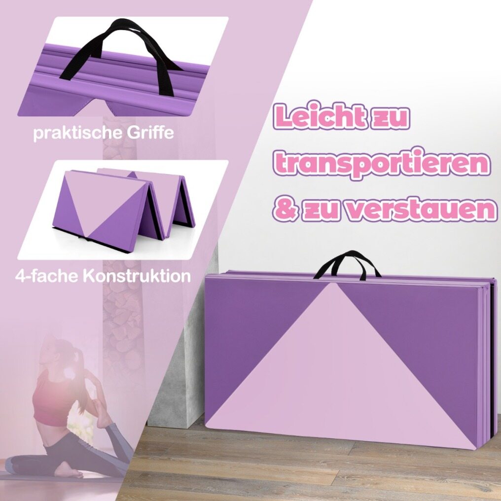 Foldable and portable design : Our exercise mat features a four-layer construction and reinforced carrying handles for easy storage and transport. The product dimensions are 240 cm x 117 cm x 5 cm (L x W x H), and when folded, it measures only 117 cm x 60 cm x 20 cm (L x W x H).