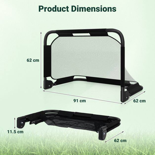 【Easy to transport】With a light weight of 4 kg and compact folded dimensions of 91 x 62 x 11.5 cm, this children's outdoor football goal fits easily into the trunk of your car, offering great convenience for use in the garden or on the lawn.