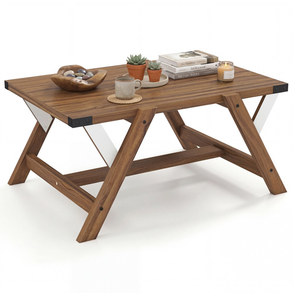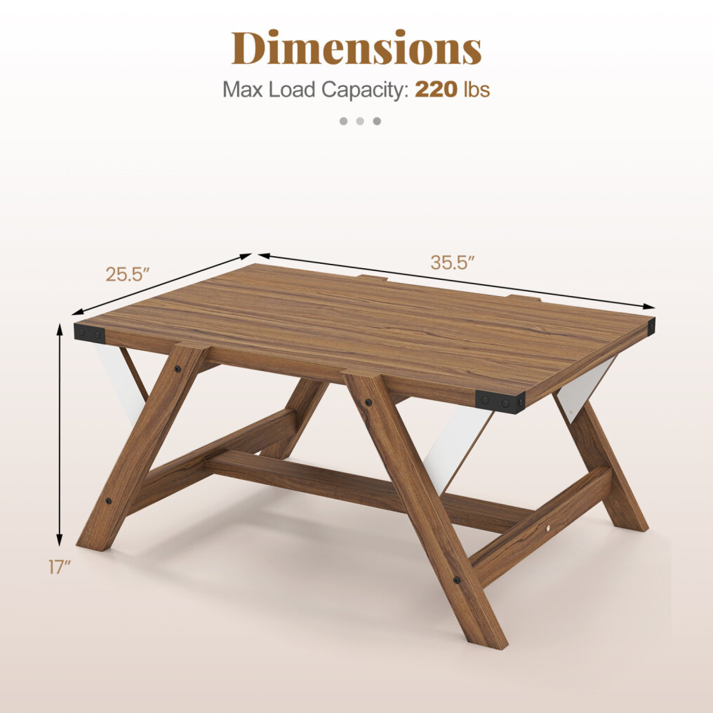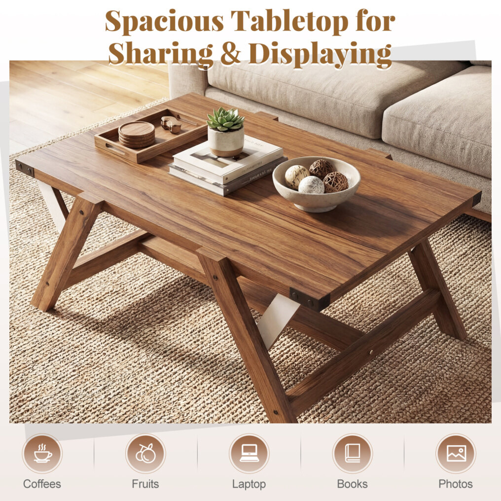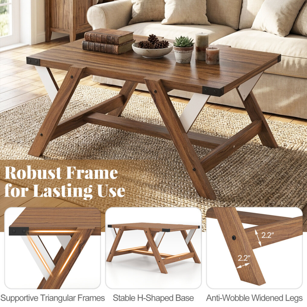 ● Sturdy Support You Can Trust: Feel confident placing your essentials on a cocktail table built to stay steady. Its triangular frames, reinforced L brackets, H-shaped base, and widened legs work together to boost stability. The top supports up to 220 lbs.