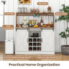 ● Wise Wine Collection: Designed for wine enthusiast, this coffee bar cabinet features a removable 9-grid wine rack, cup and glass holders, keeping your bottles and stemware in order. Besides, the top hutch, wide countertop and open compartment facilitate the placement of kitchenware, spirits and bar accessories.