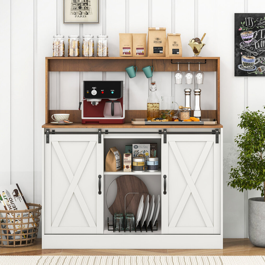 -Farmhouse coffee bar cabinet for kitchen, dining room or living room