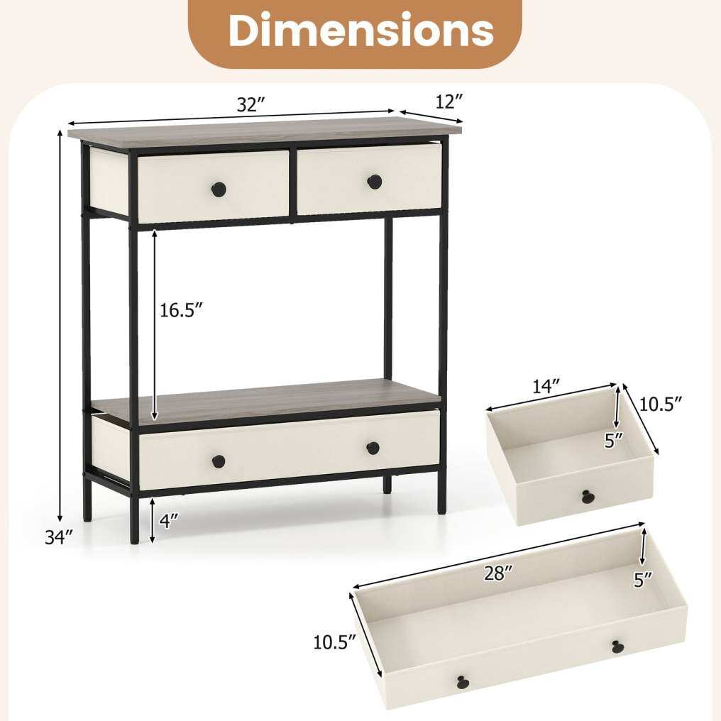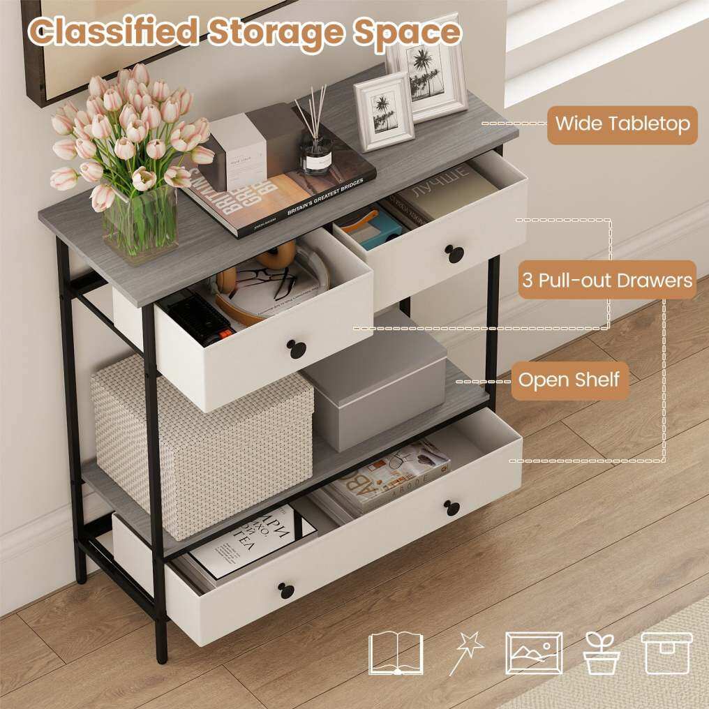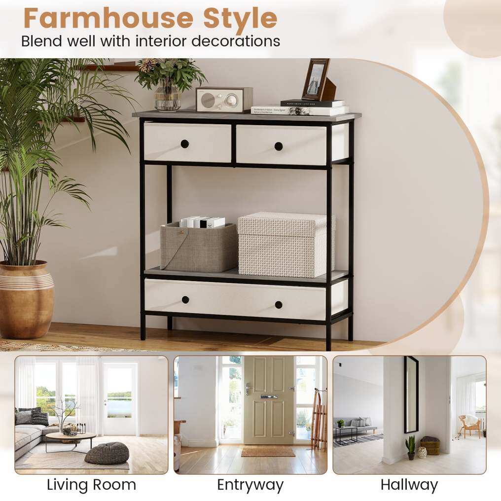 ● Classified Storage Space: This entryway table offers 3 spacious fabric drawers for neatly stashing personal items. Additionally, the wide tabletop and open storage shelf provide easy access to frequently used items and decorative pieces.