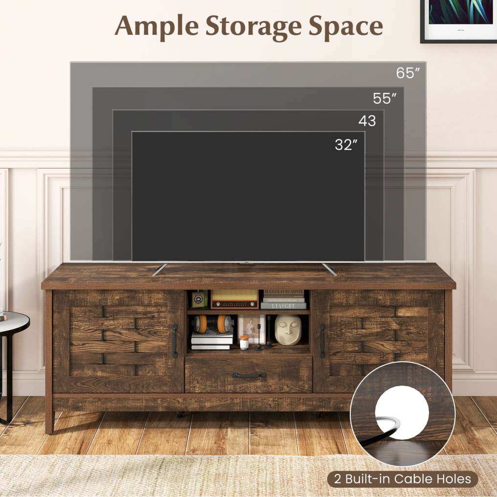 ● Fully Customizable Storage: This farmhouse TV stand includes 3 flexible shelves that each adjust to 3 different height positions and can be completely removed for personalized storage compartments. The adaptable design allows you to perfectly house components of various sizes, transforming the rustic media console table to fit your exact needs.