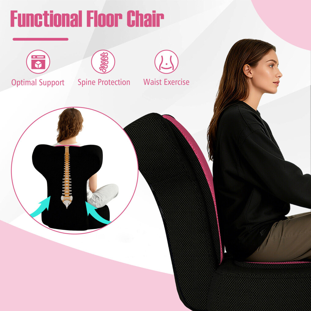 Work your back while enjoying optimal comfort with our functional floor chair! The headrest adjusts to 14 positions and the backrest to 5, allowing you to find the perfect angle for gaming, relaxing, reading, or watching TV. This ergonomic chair conforms to the natural curve of your body. The breathable fabric and elastic foam ensure comfortable support. The metal frame provides sturdiness and stability. Lightweight and compact, it's easy to move and store. Transform your room into a haven of peace with this practical chair!