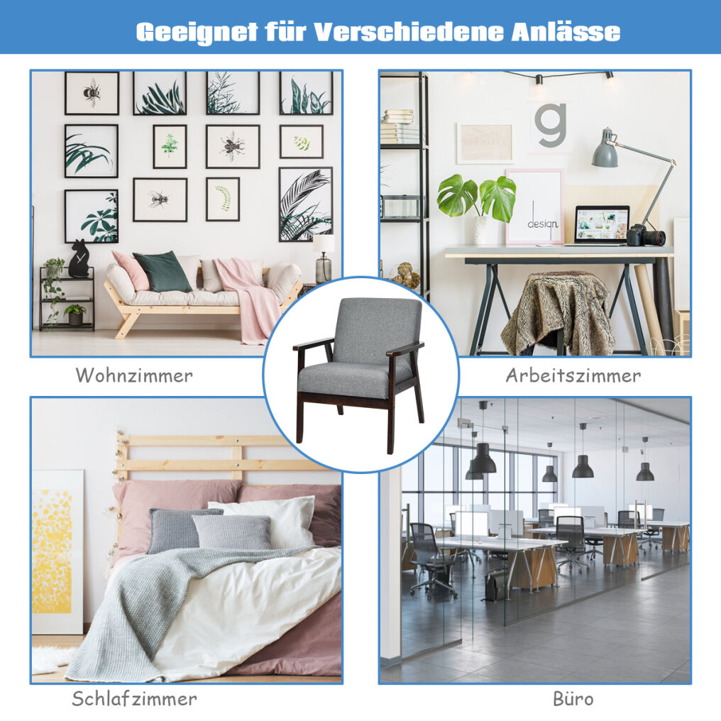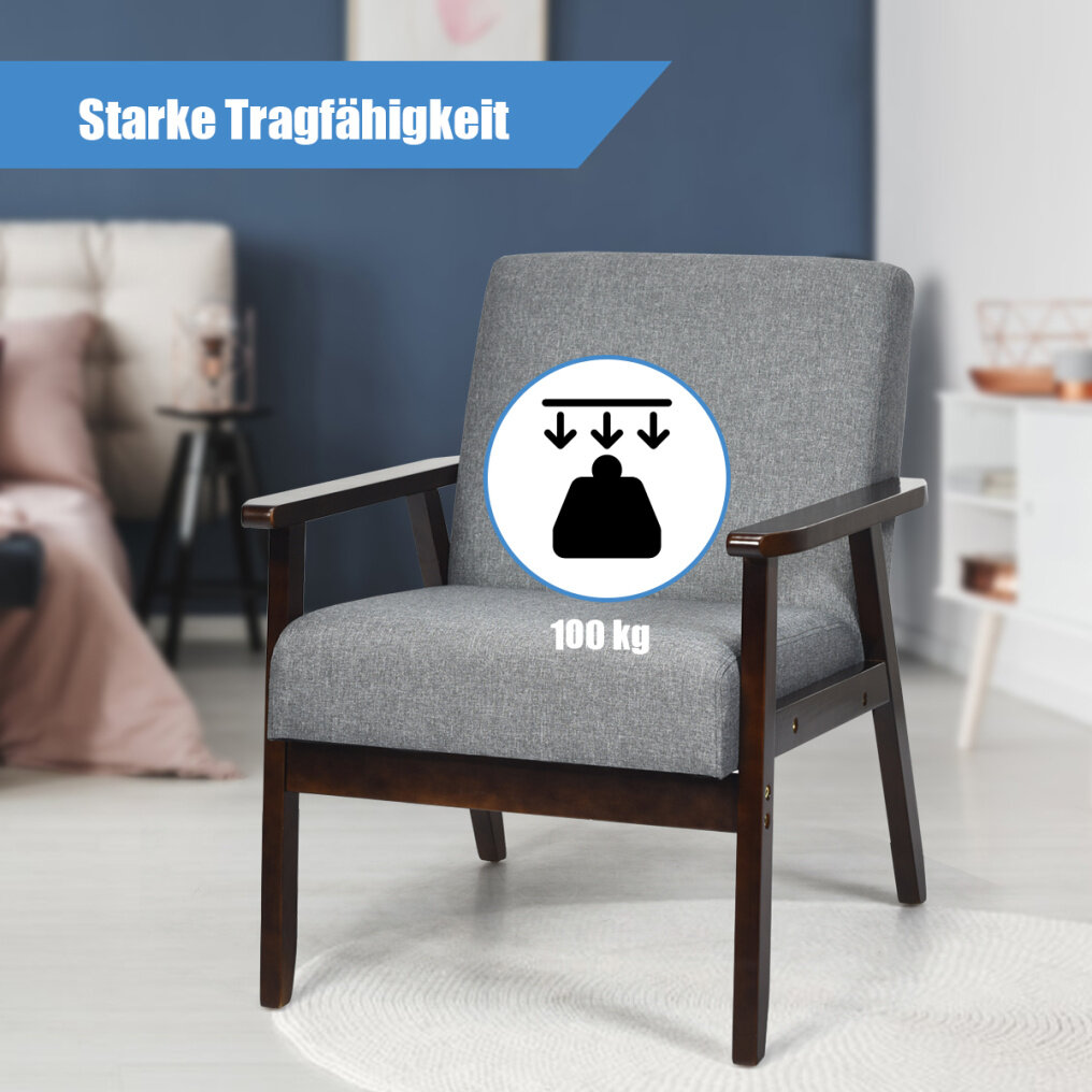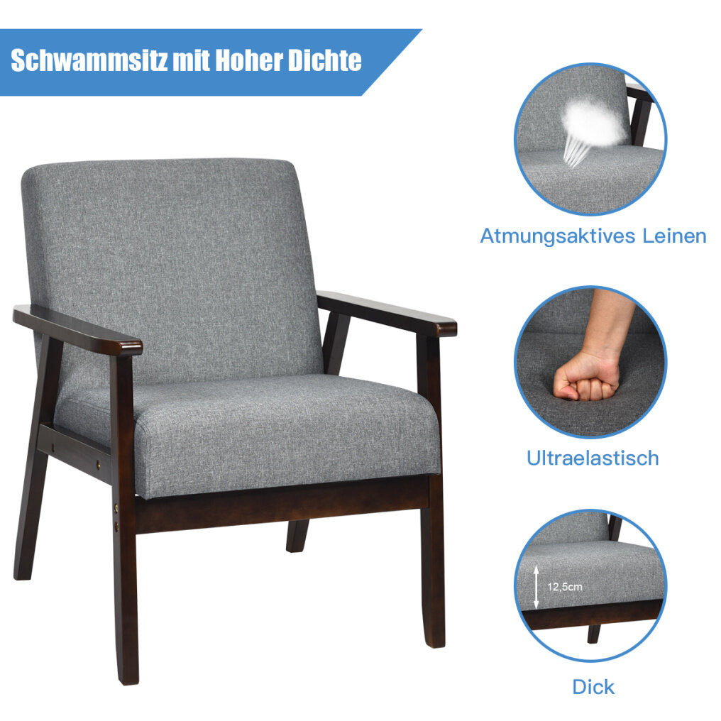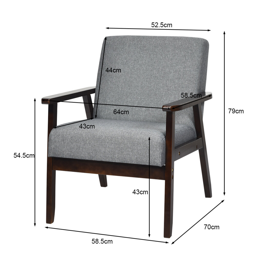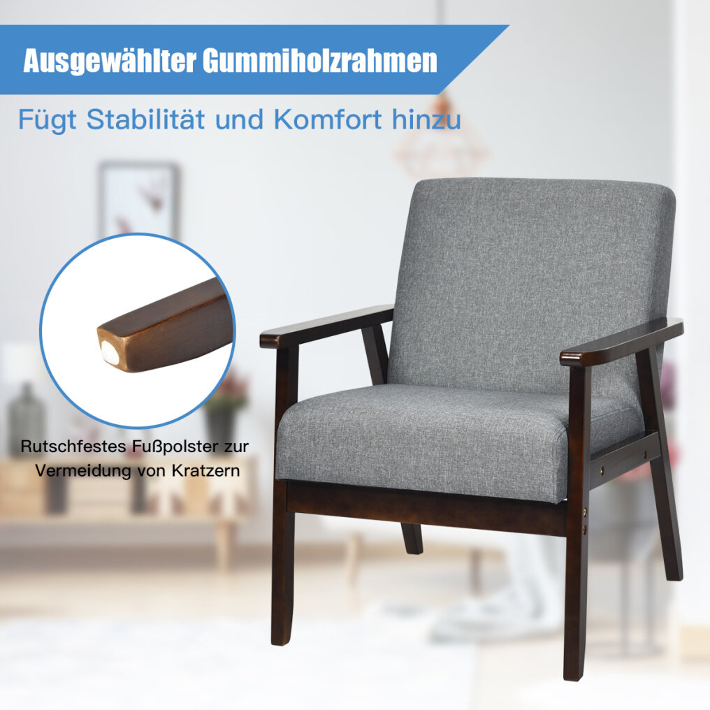 Solid Rubber Wood Fabric Accent Armchair-Gray