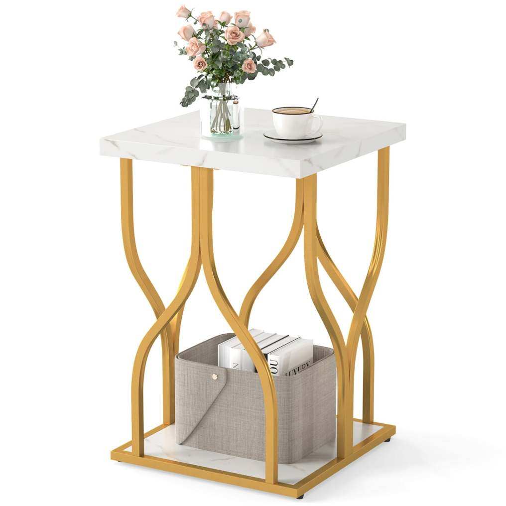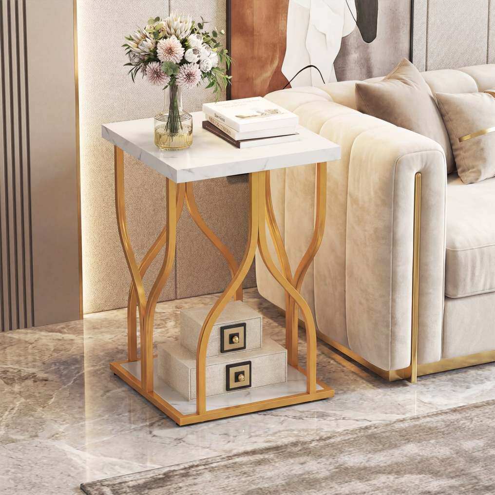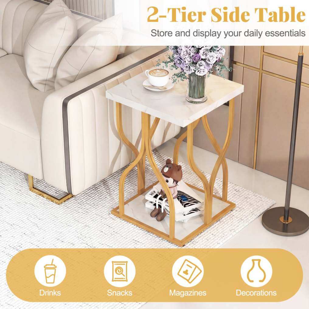 ● Generous 2-Tier Storage Capacity: Designed with practicality in mind, the end table offers a spacious tabletop for your essentials and a convenient bottom shelf for keeping magazines, remote controls, or baskets organized below.