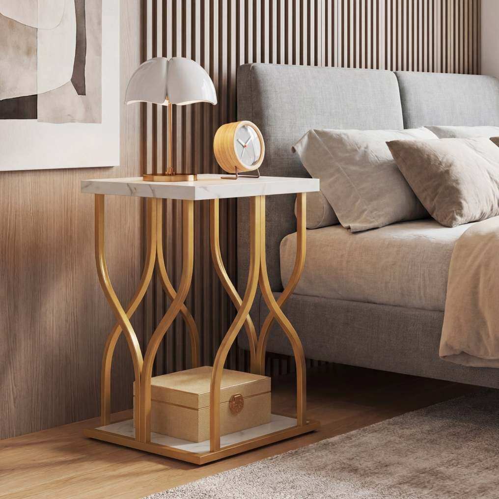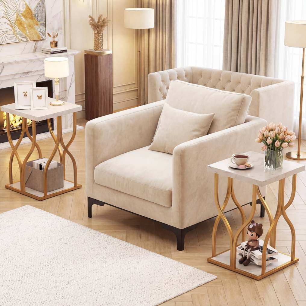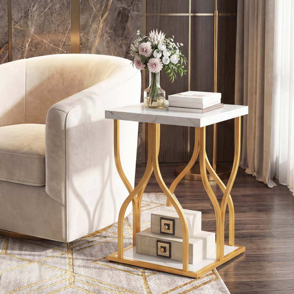 ● Generous 2-Tier Storage Capacity: Designed with practicality in mind, the end table offers a spacious tabletop for your essentials and a convenient bottom shelf for keeping magazines, remote controls, or baskets organized below.