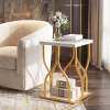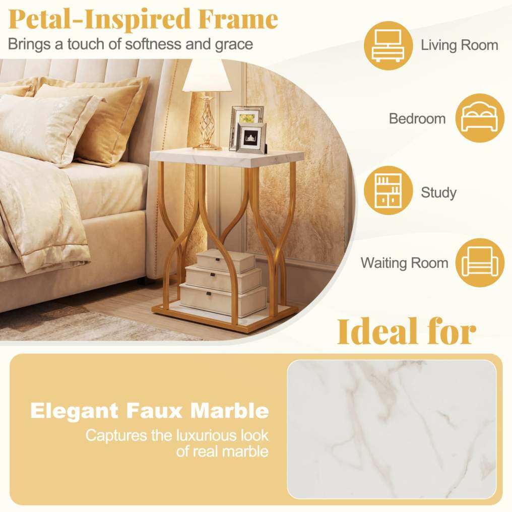 ● Elegant Design Elevates Any Space: This side table features a stunning faux marble surface combined with a petal-inspired frame, instantly adding a sophisticated touch to your home decorations.