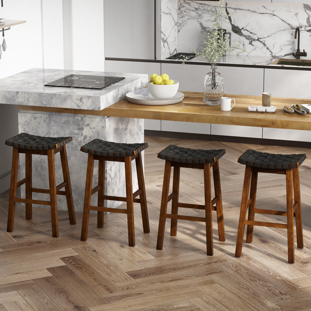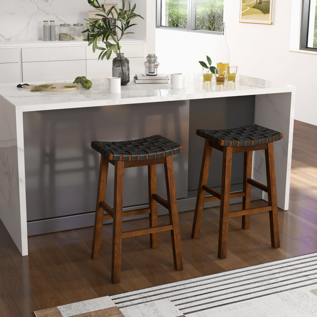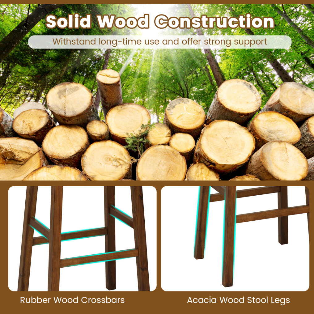 ● Solid Wood Construction: The bar stools feature rubber wood crossbars and acacia wood stool legs, which are natural and burr-free. Such a high-grade wood frame will withstand long-time use and offer strong support