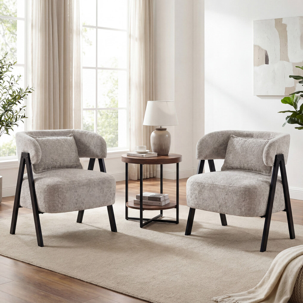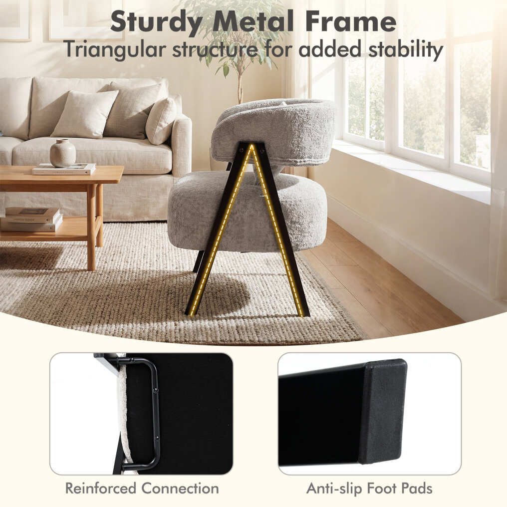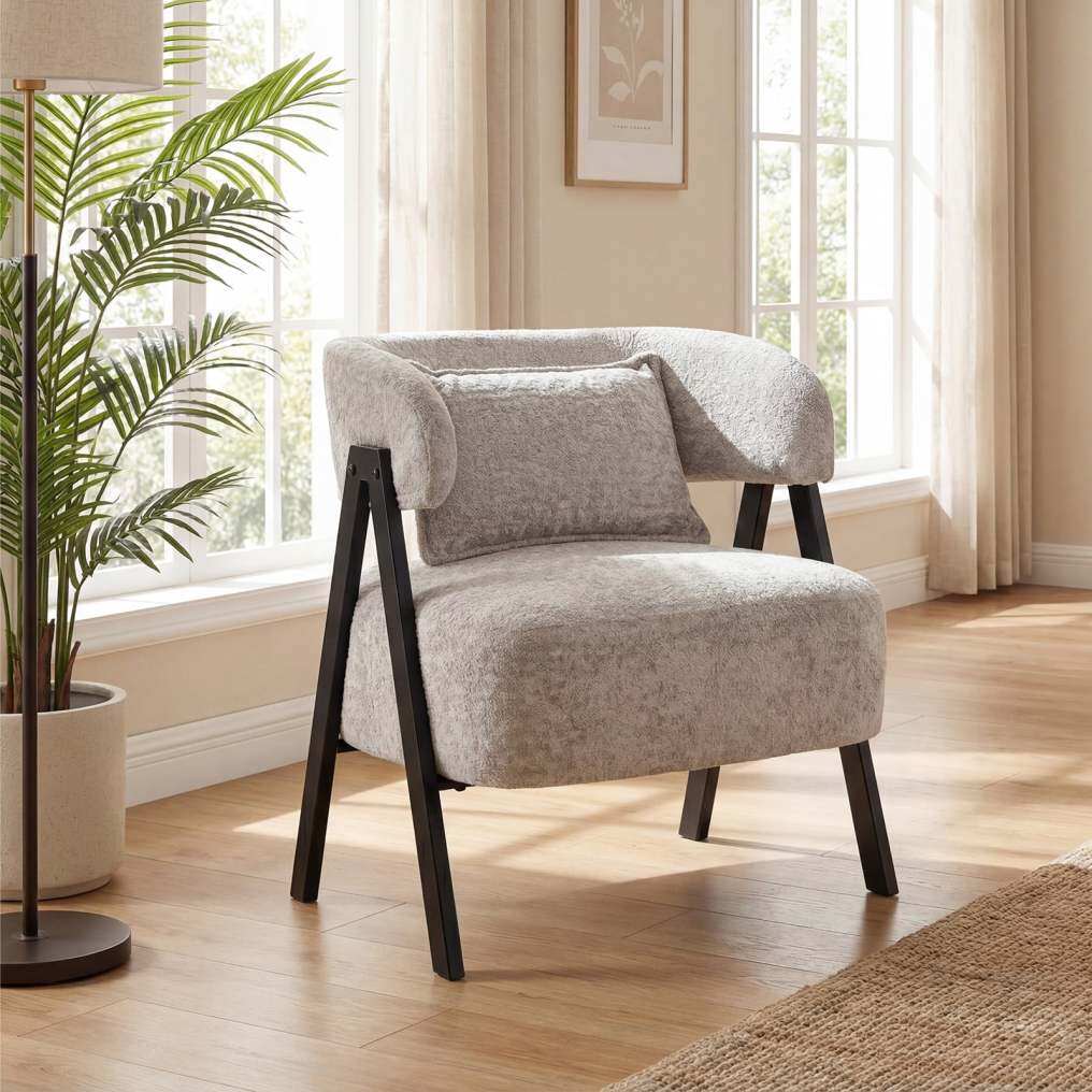 Upholstered in soft faux rabbit fur, this armchair adds a touch of warmth and texture to any room. Its curved back design supports a natural sitting posture, making it an inviting spot for reading, relaxing, or unwinding after a busy day. The thick sponge padded seat and included lumbar pillow contribute to prolonged comfort during use. Constructed with sturdy metal legs arranged in a triangular structure, the reading chair ensures stability and durability. It also includes anti-slip foot pads to protect your floors and maintain chair steadiness on different surfaces.