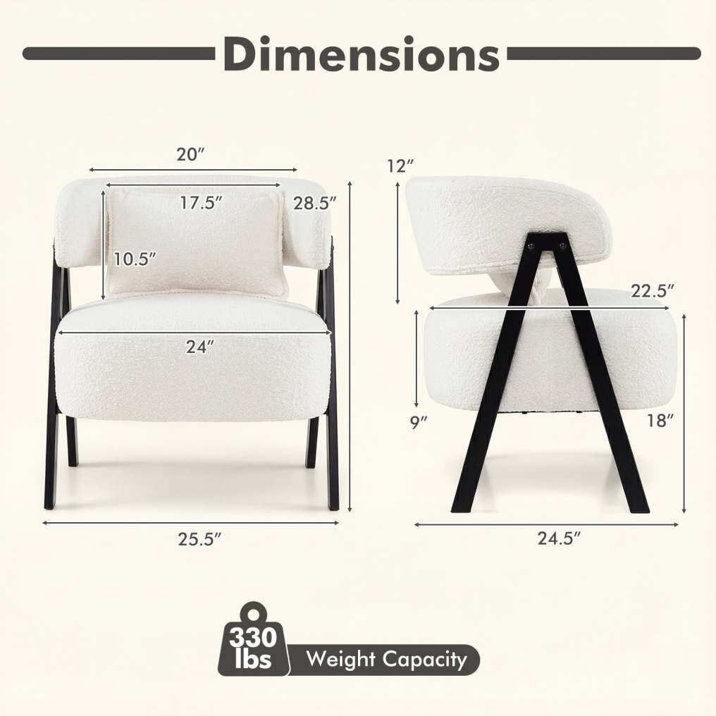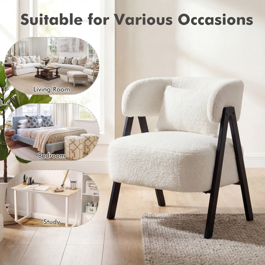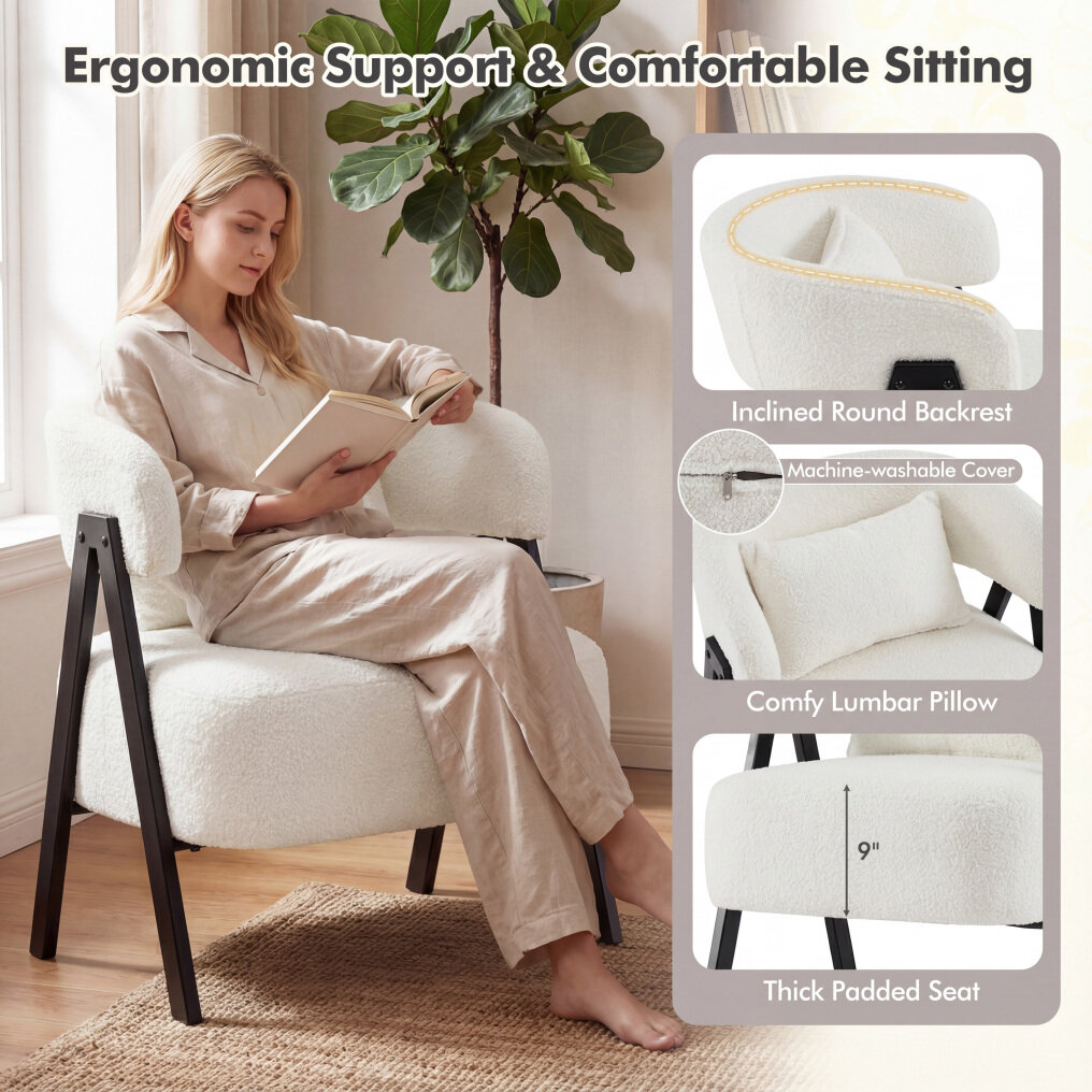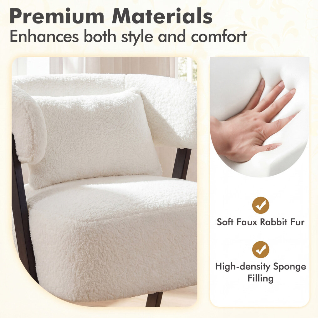 Upholstered in soft faux rabbit fur, this armchair adds a touch of warmth and texture to any room. Its curved back design supports a natural sitting posture, making it an inviting spot for reading, relaxing, or unwinding after a busy day. The thick sponge padded seat and included lumbar pillow contribute to prolonged comfort during use. Constructed with sturdy metal legs arranged in a triangular structure, the reading chair ensures stability and durability. It also includes anti-slip foot pads to protect your floors and maintain chair steadiness on different surfaces.